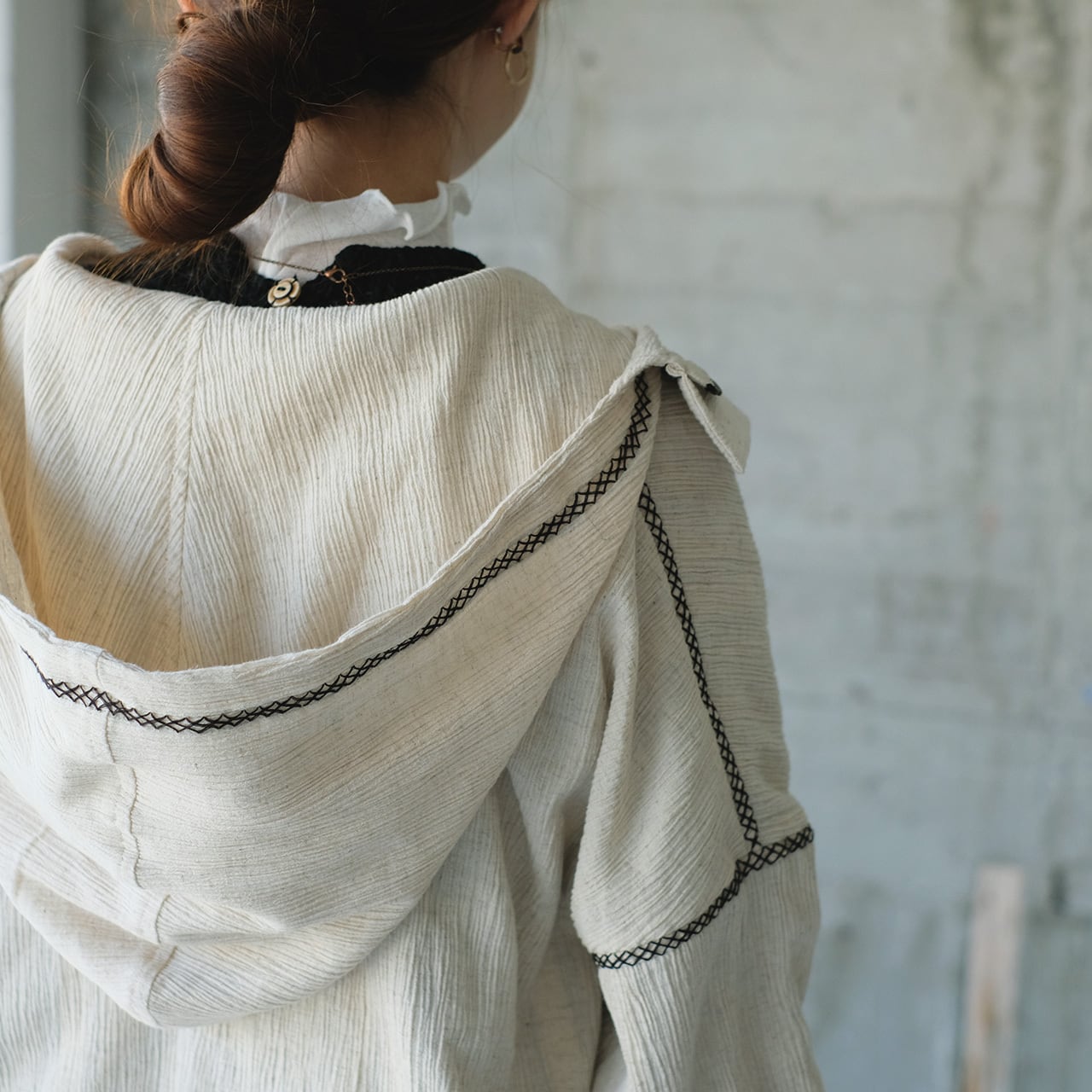 風合いのあるコットンクレープ生地を使ったフーディジャケットは