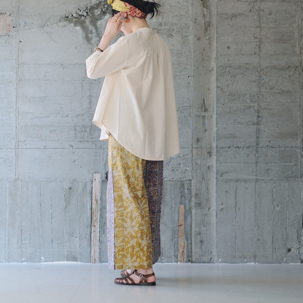 今季は、生地をインド・ジャイプールの伝統技法「ブロックプリント」に変更。