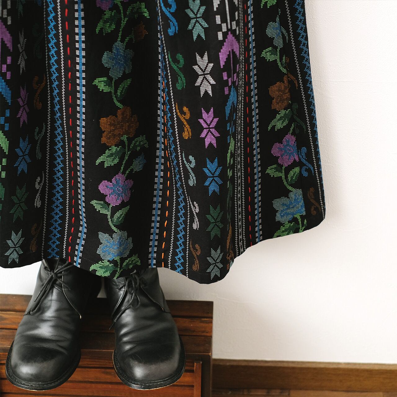 【秋のフォークロア♪チロリアン柄ロングスカート (25w-03)ブラック