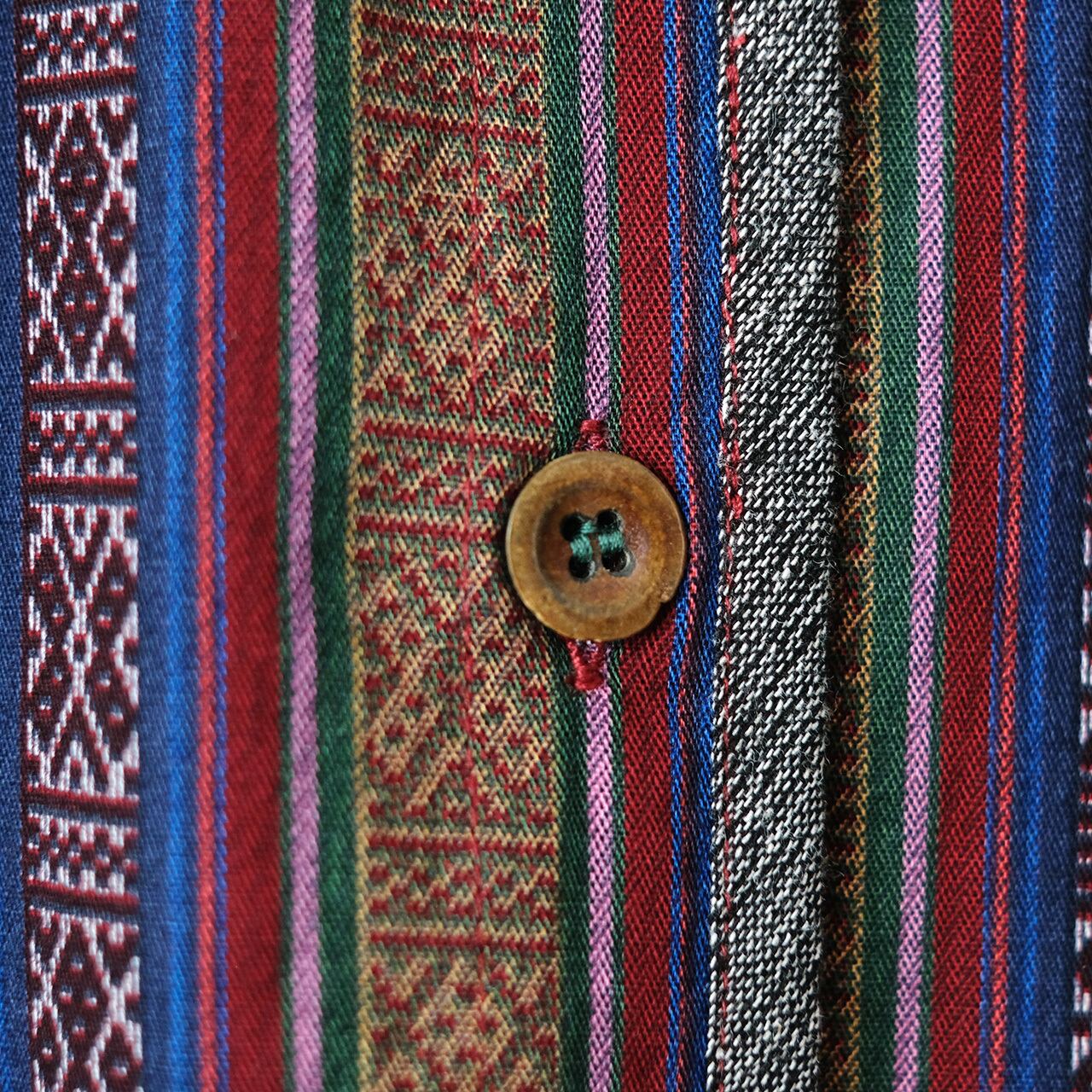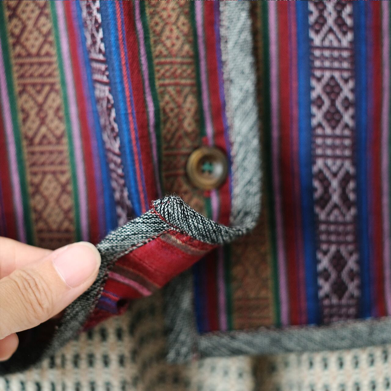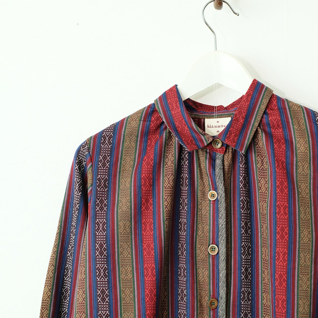 秋色ストライプ◎エスニック柄ボタンダウンシャツ (25w-04)カーキ