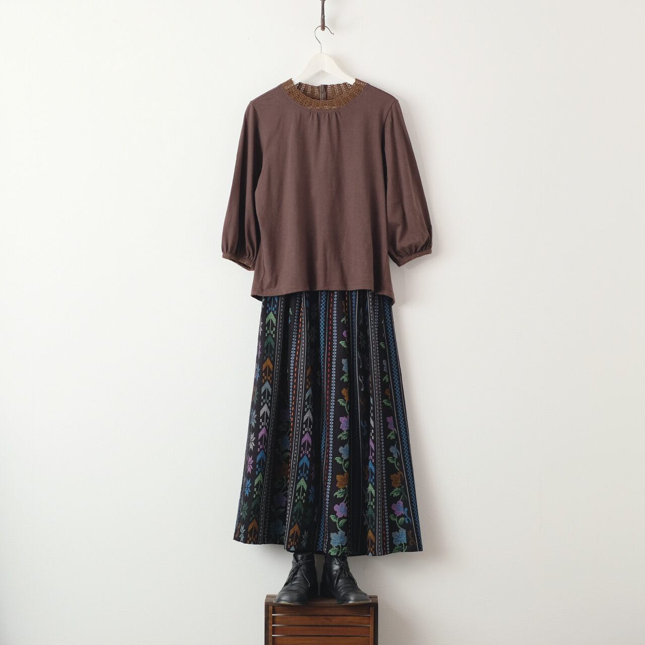 【待望の七分袖】人気シリーズ新作!かぎ針編み七分袖カットソー(25w-02)ブラウン