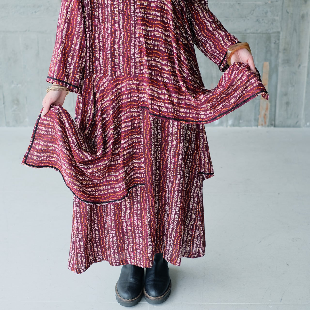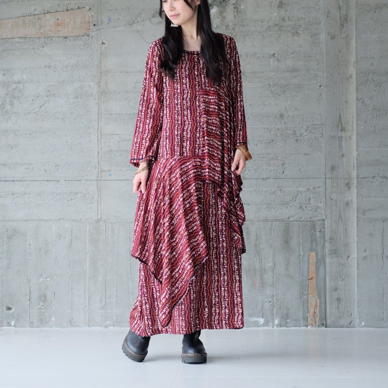 【秋冬新色】サマになる立体的シルエット!ランダムレイヤードワンピース(25s-01)ボルドー