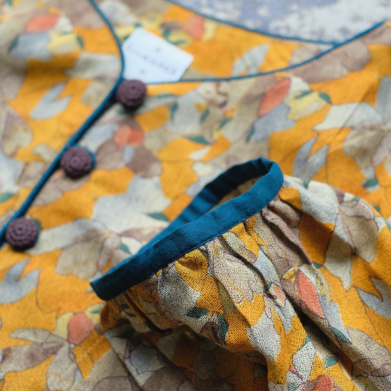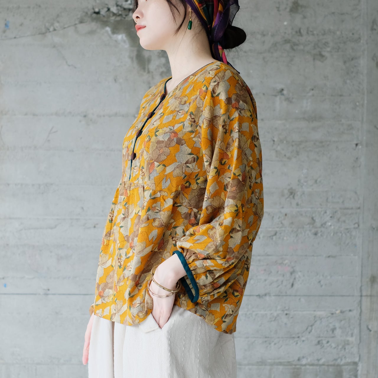 魅せる一枚!くるみボタンのフレアブラウス(25w-01)マスタード