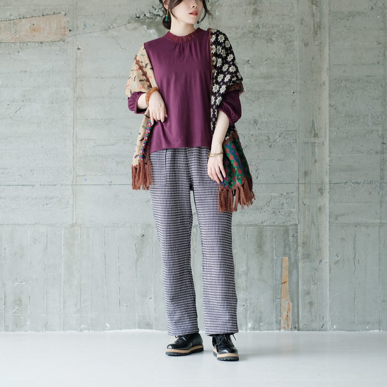 ウエストゴムでゆるっと履けるイージーパンツ。
