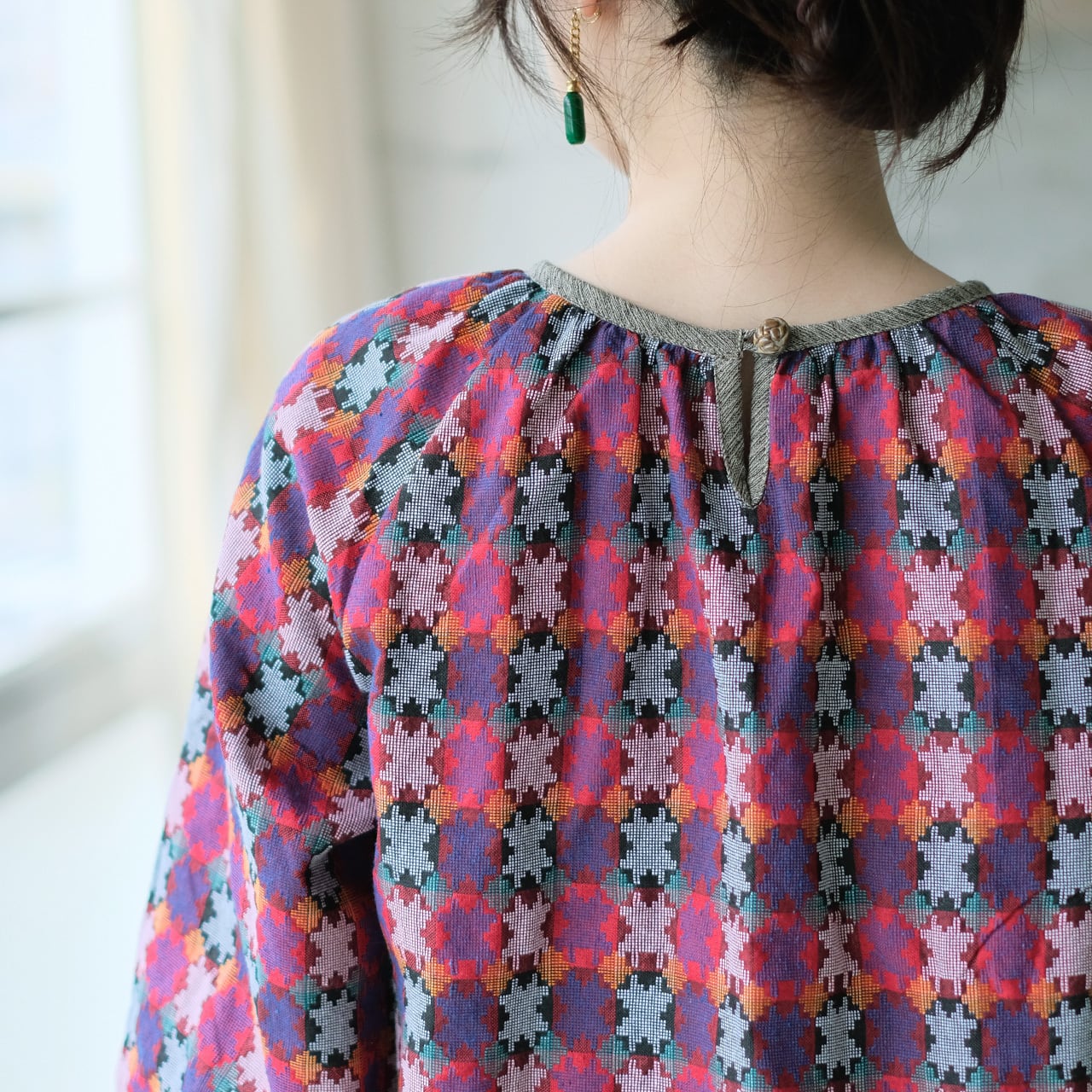 カラフルで美しい伝統織物*ダカ織りプルブラウス(25w-06)パープル