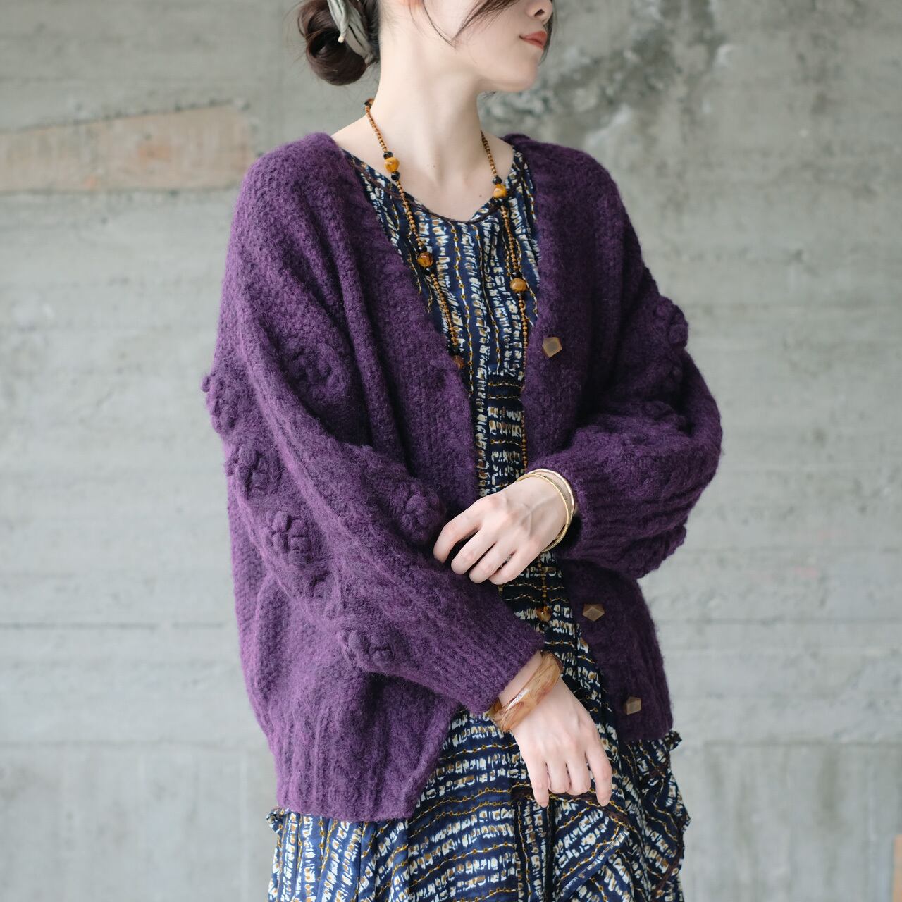 【予約販売】【新色登場】あったかウール♡手編みモヘアニットカーディガン(22w-12)パープル