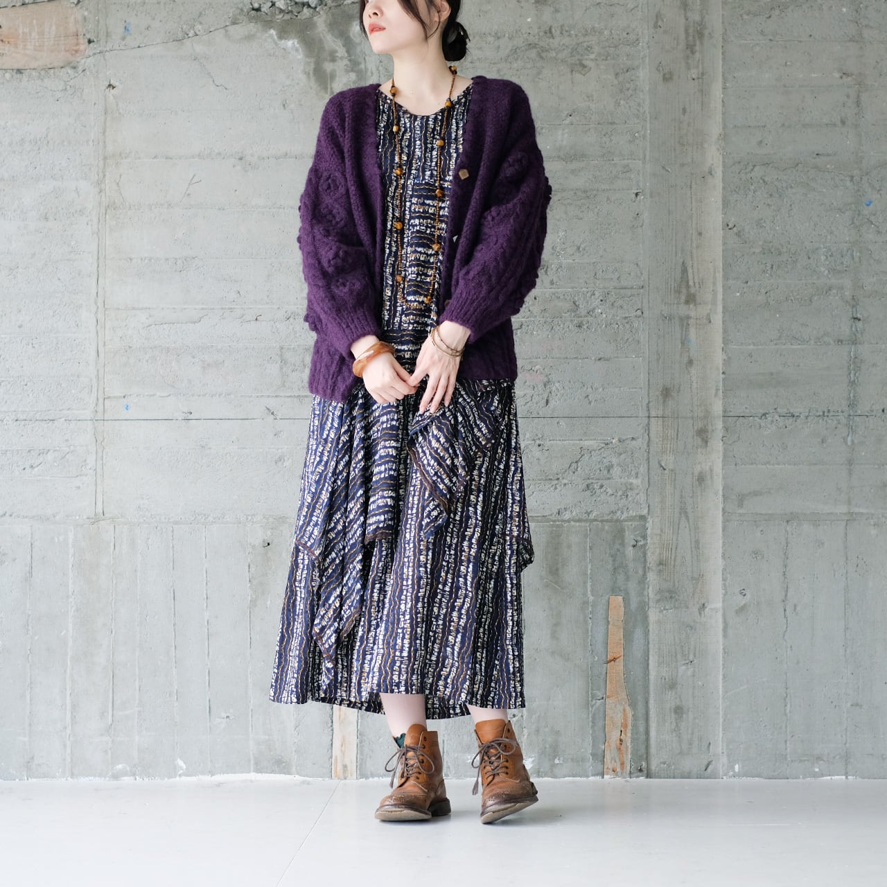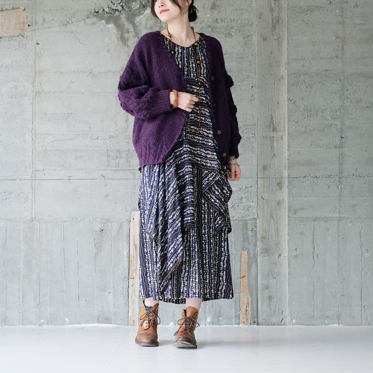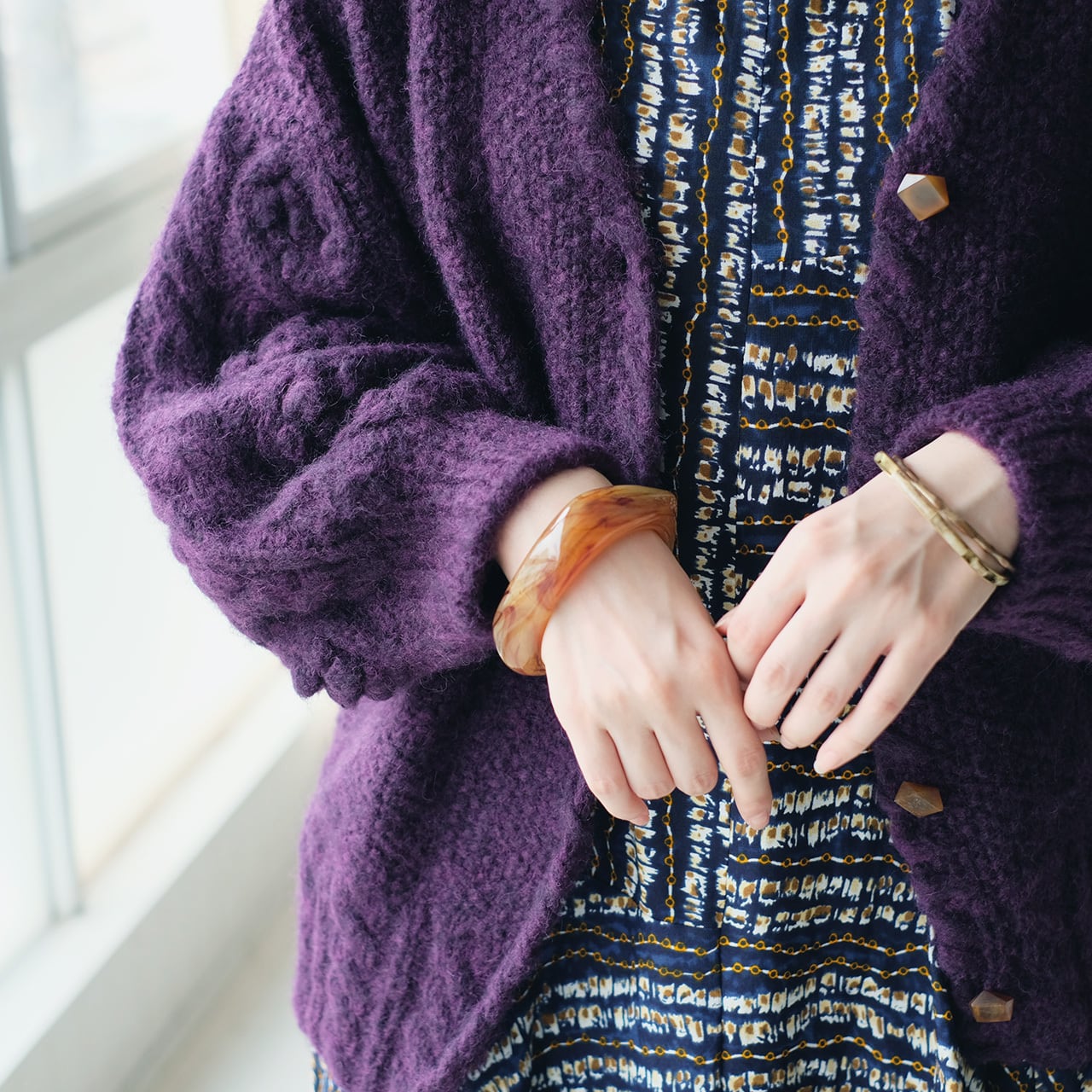 【新色登場】あったかウール♡手編みモヘアニットカーディガン(22w-12)パープル