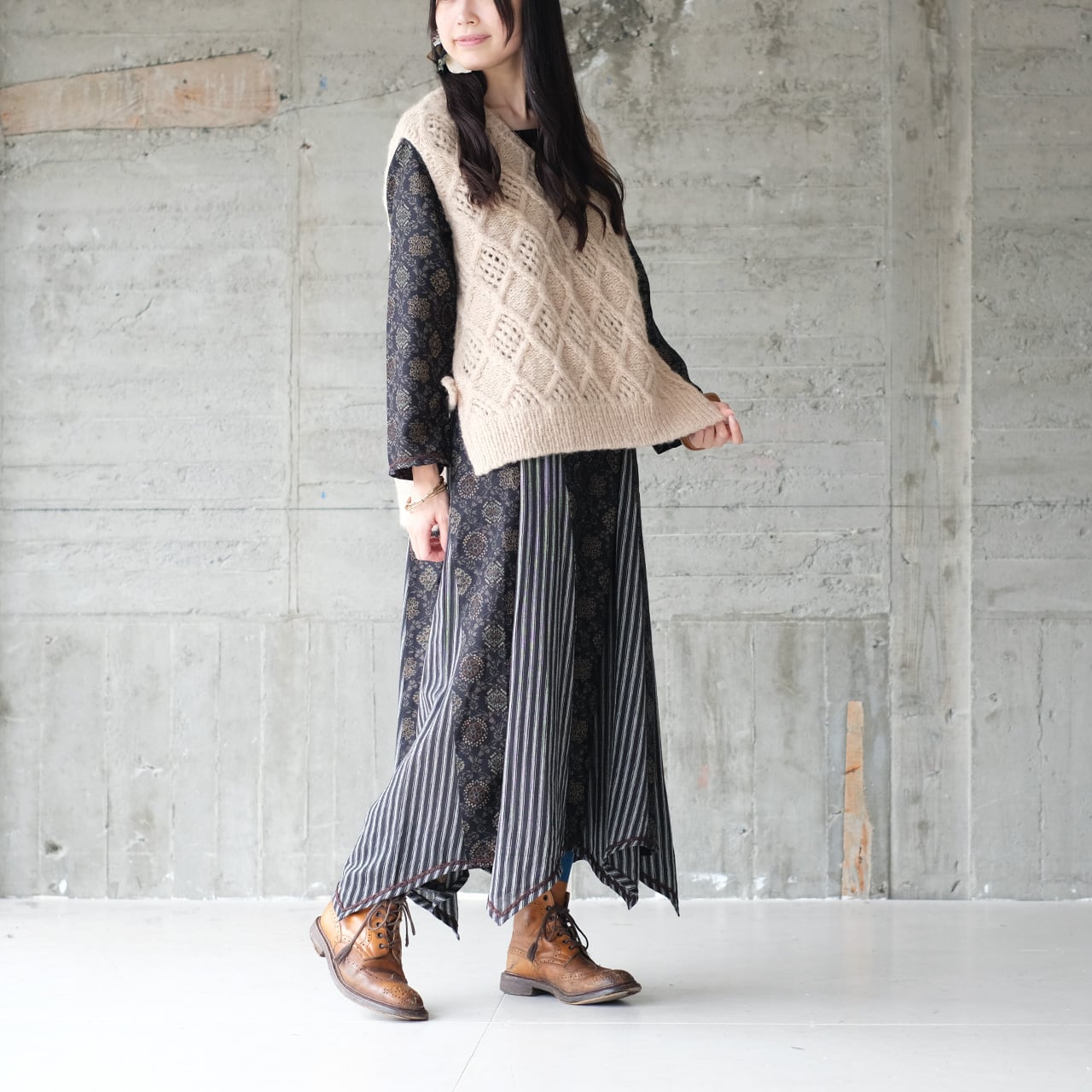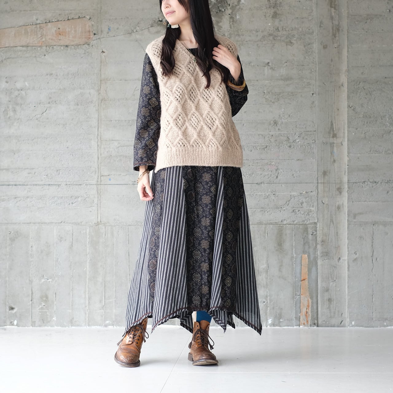 ◆ケーブル編みのアレンジがレトロ可愛い