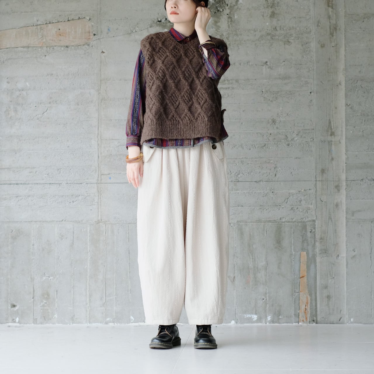 あったかウール♡手編みニットベスト(25w-05)ブラウン
