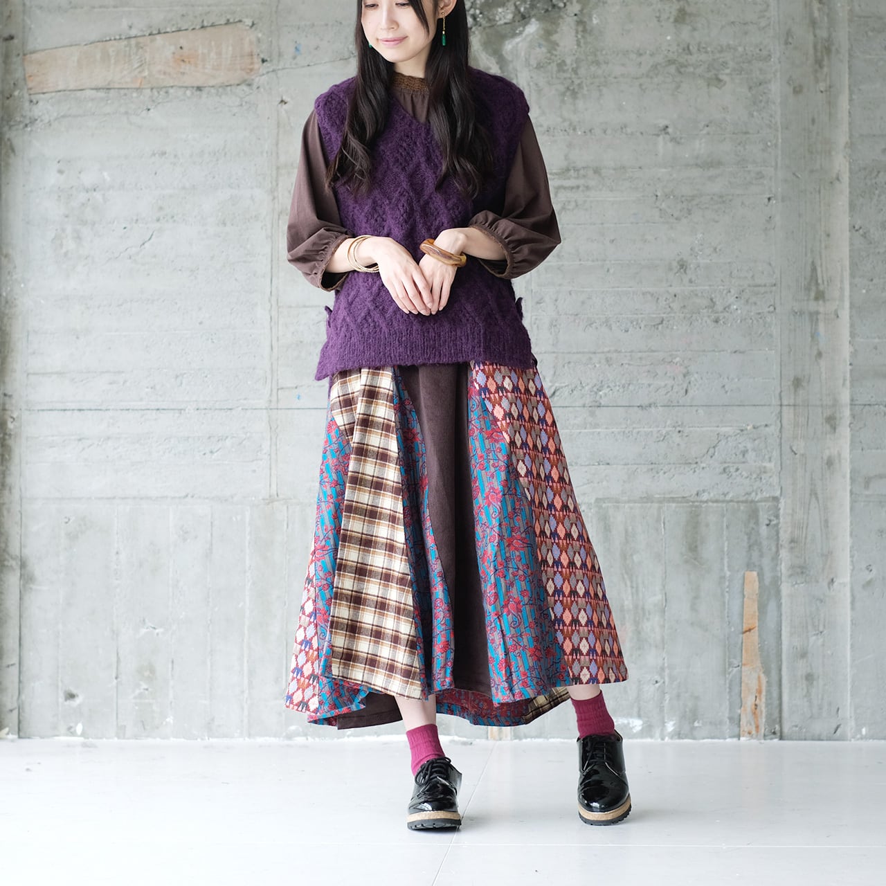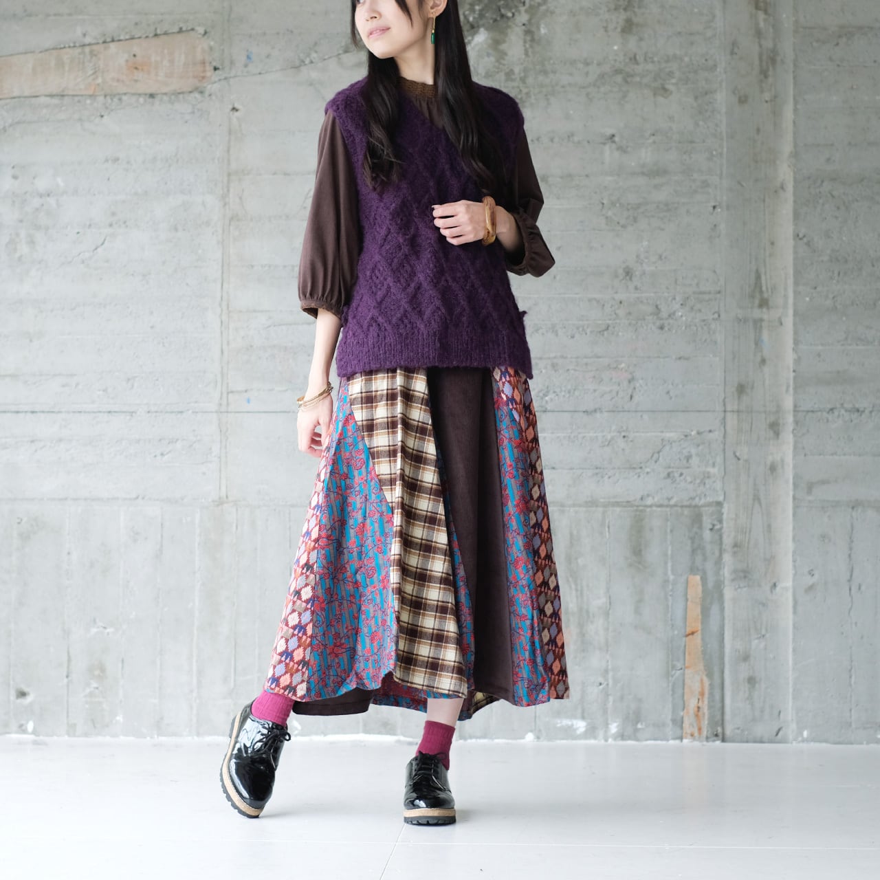 あったかウール♡手編みニットベスト(25w-05)パープル