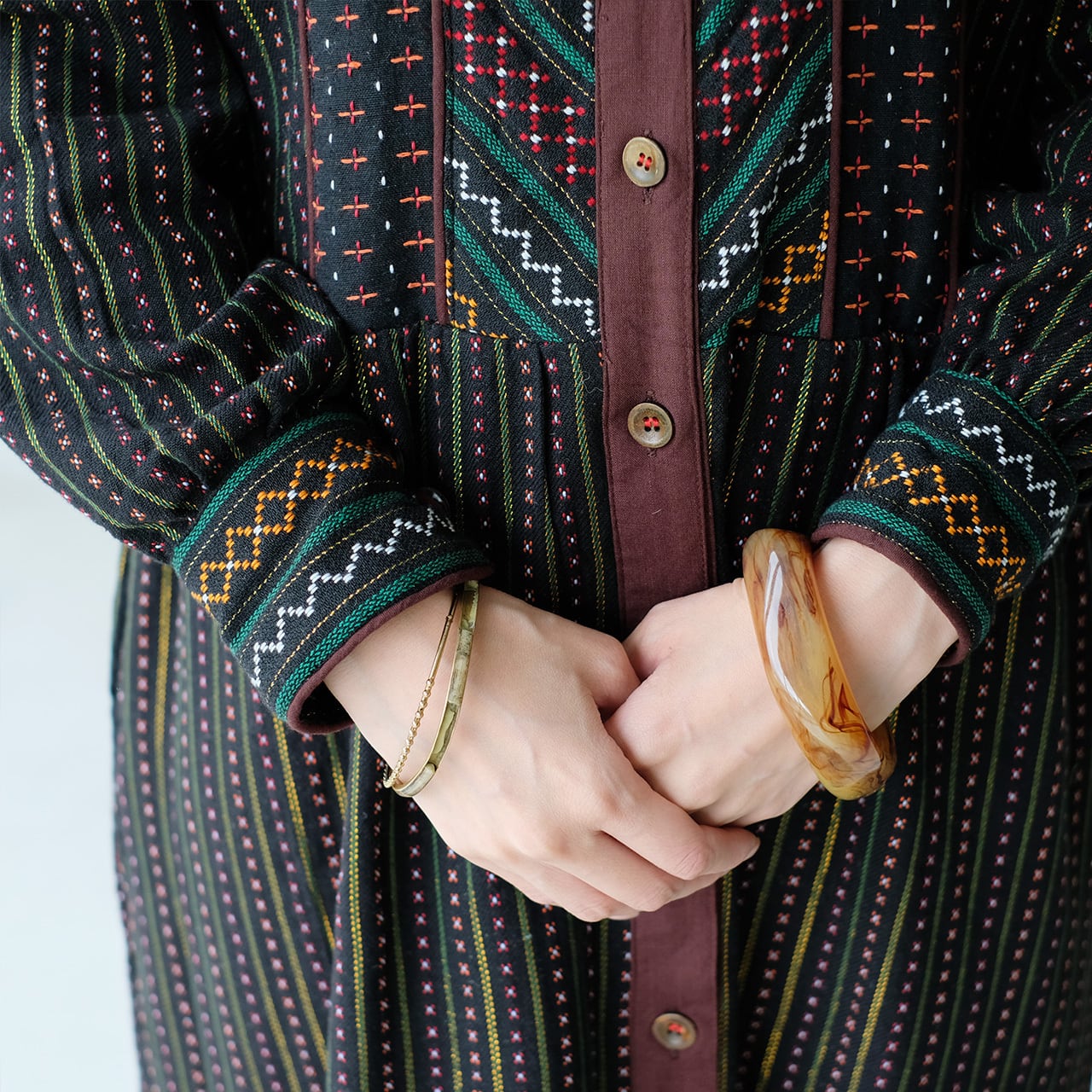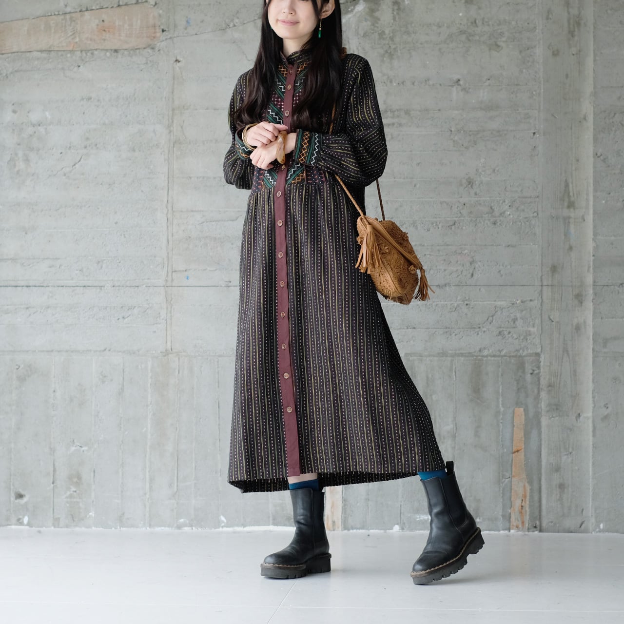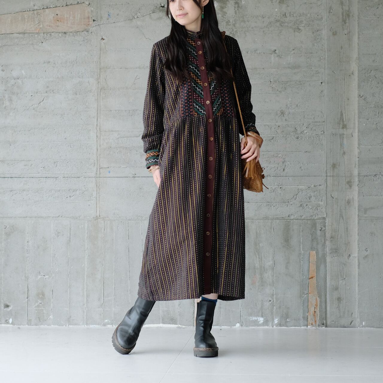 民族衣装のようでもあり、ヴィンテージレトロな古着にも見える、