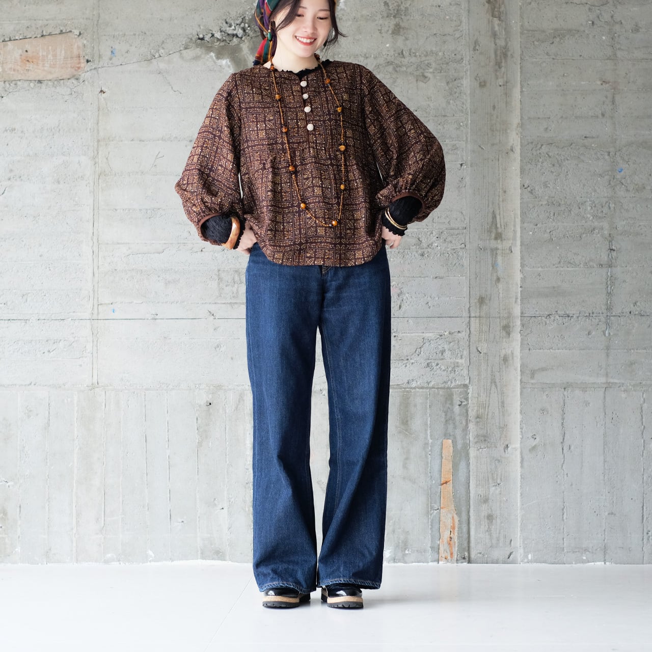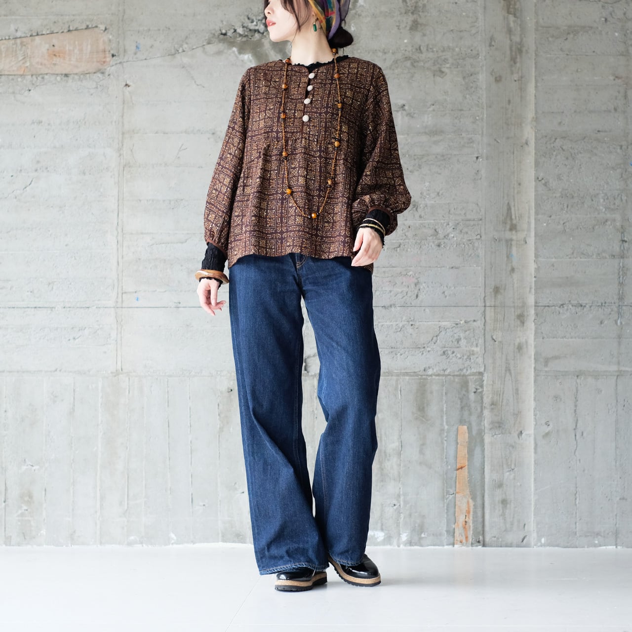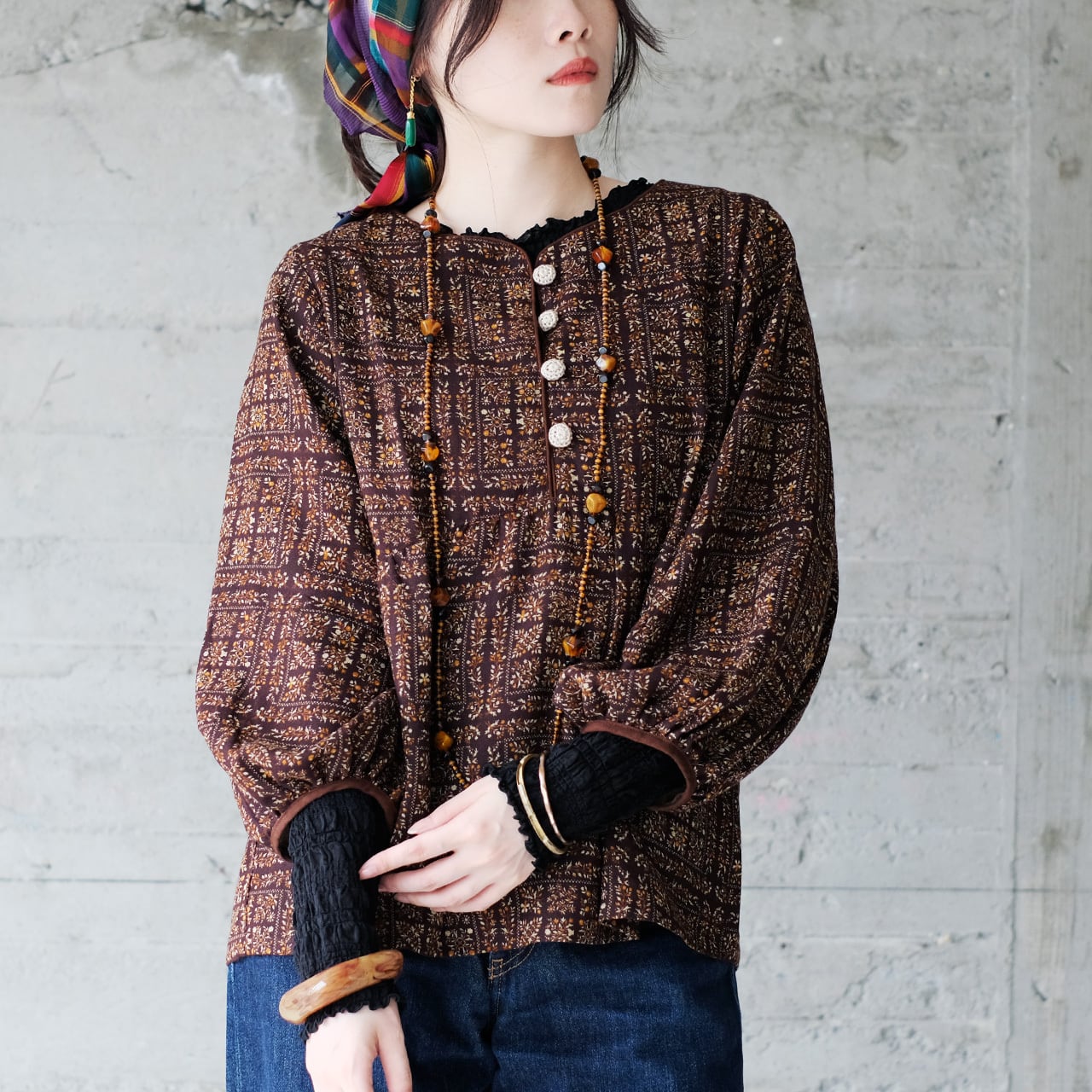 【新色】魅せる一枚!くるみボタンのフレアブラウス(25w-01)ダークブラウン