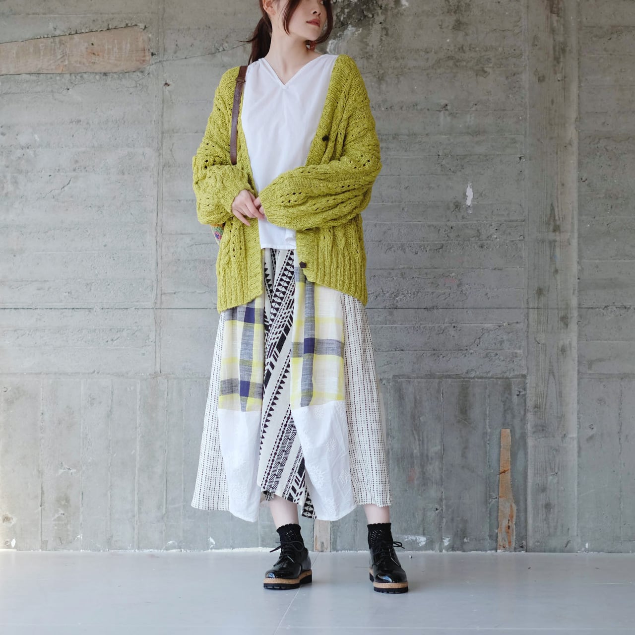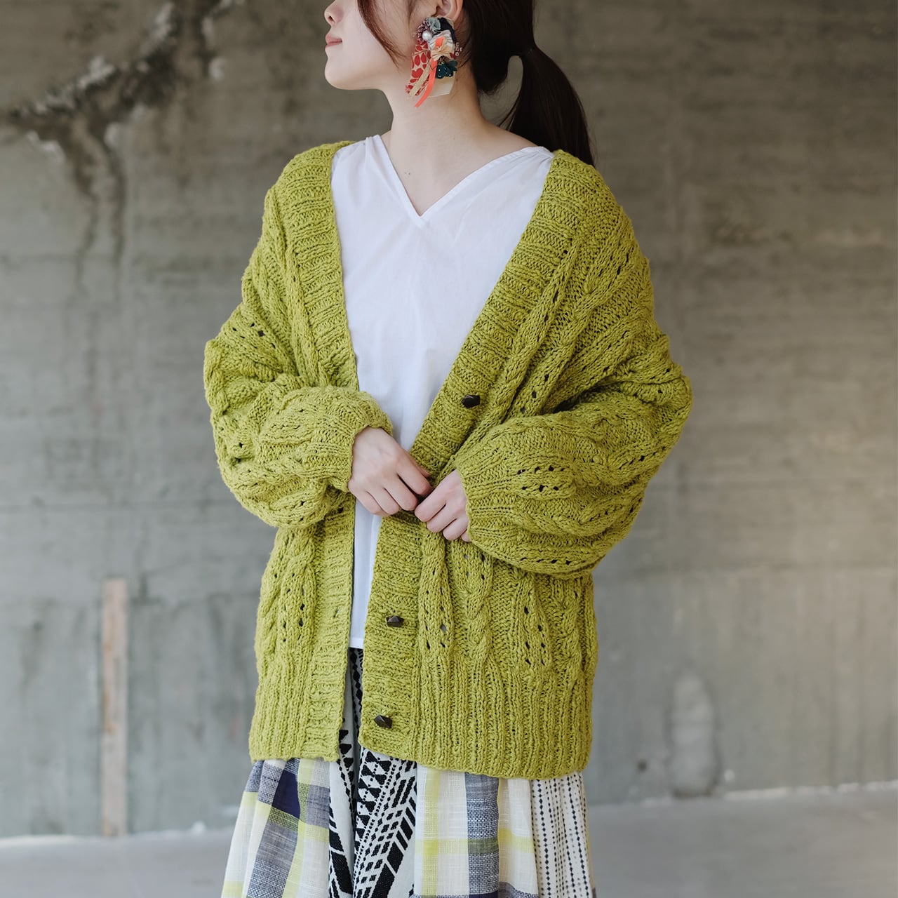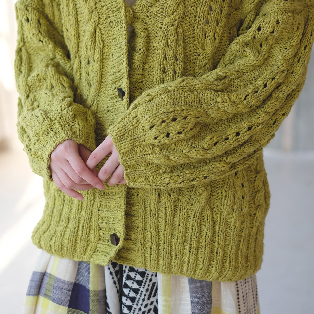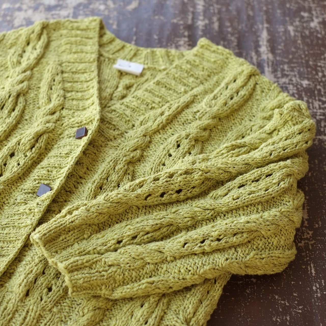 機会編みの均一さとは真逆の、柔らかな表情が豊かなカーディガン。