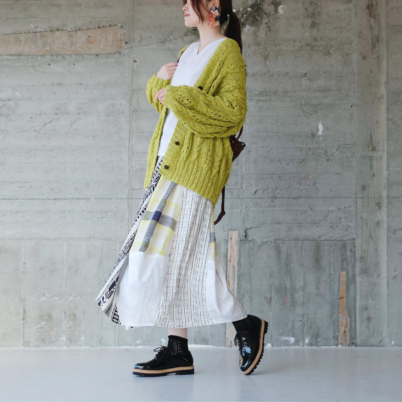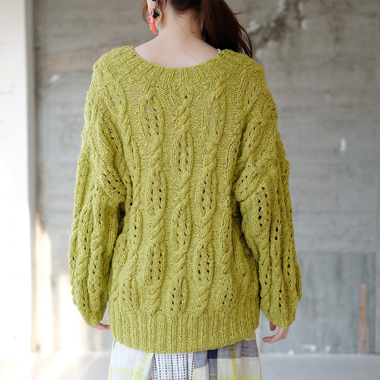 ざっくり編まれたローゲージのケーブルニットは、それだけでフェミニンな雰囲気♡