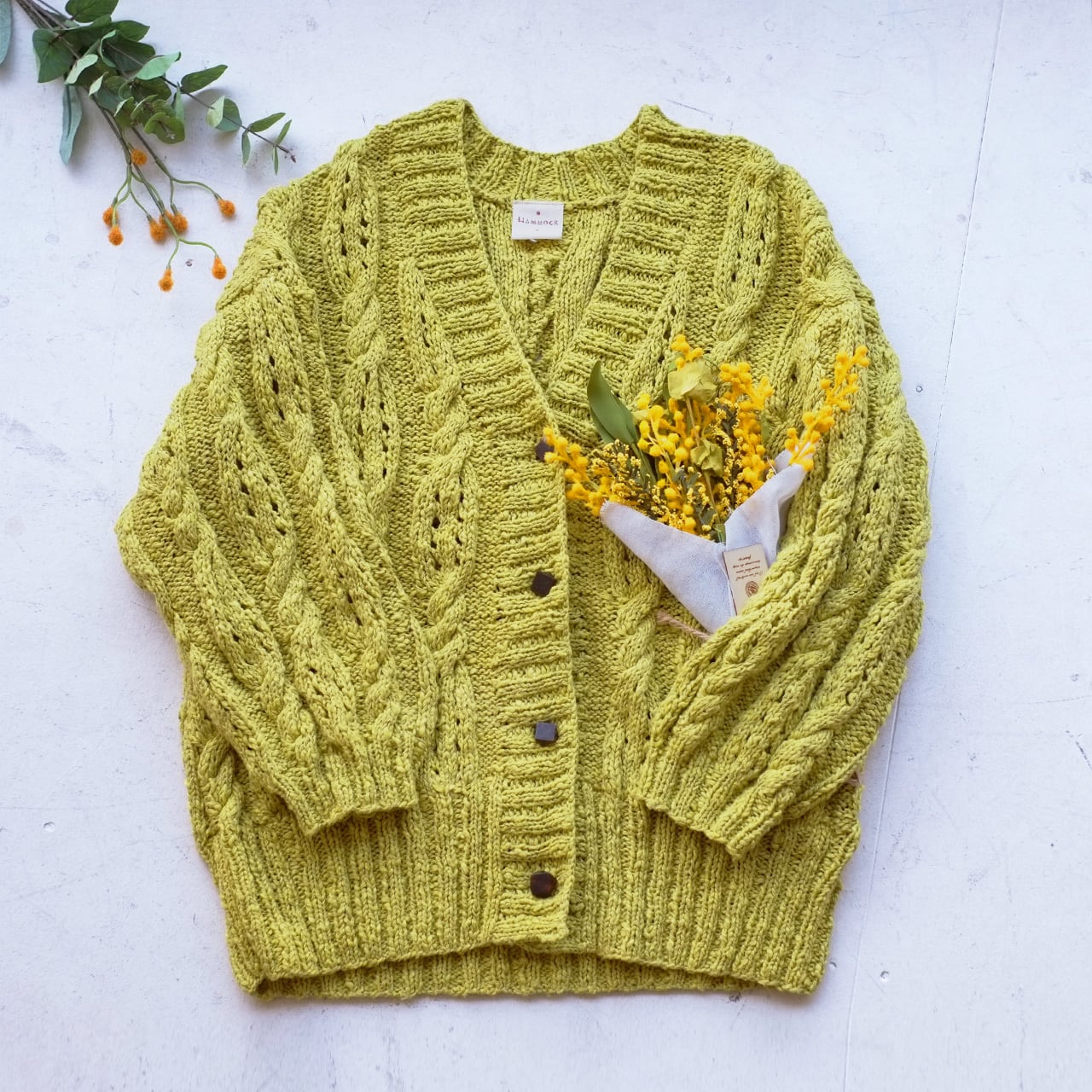 【予約販売】春色ニットの手編みカーディガン (24s-01)ミモザイエロー