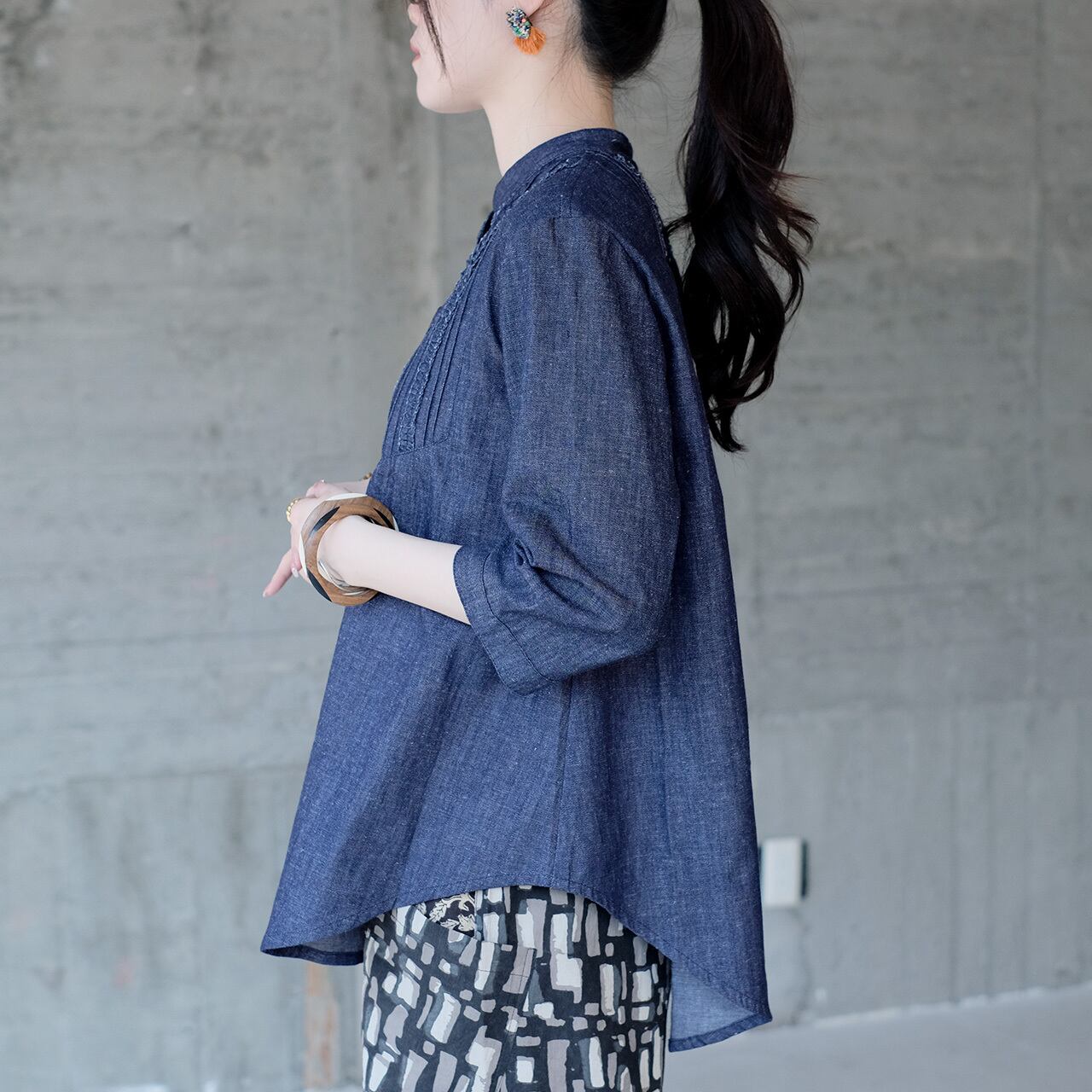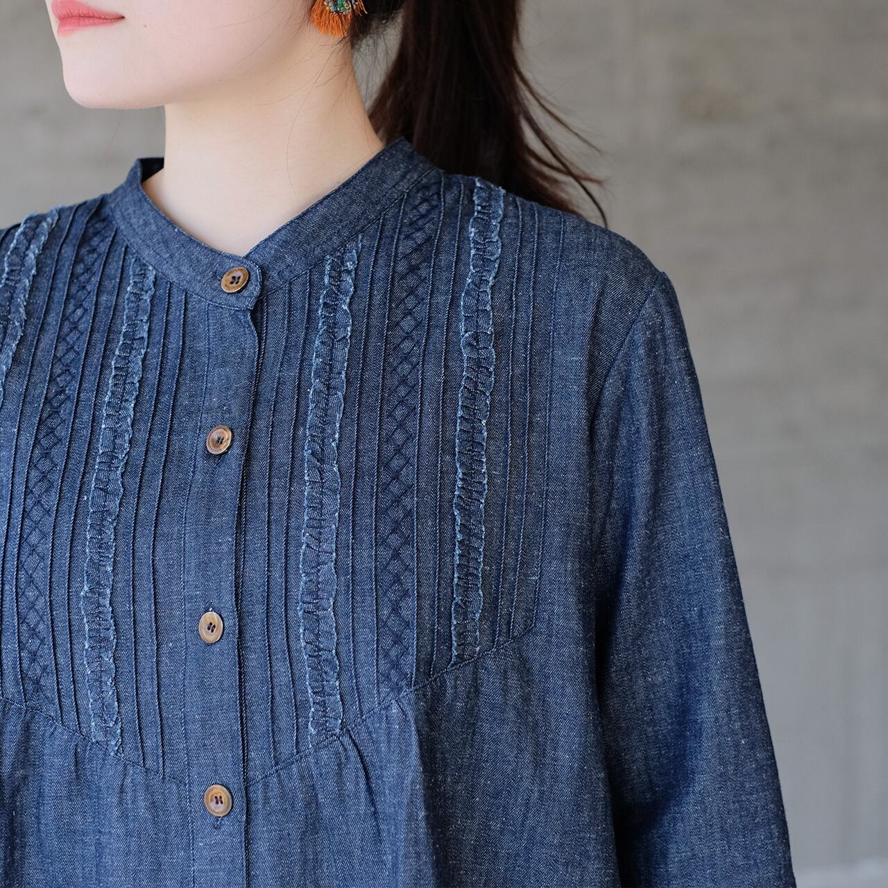 大人可愛い♡七分袖ピンタックフリルブラウス(26s-02)デニム