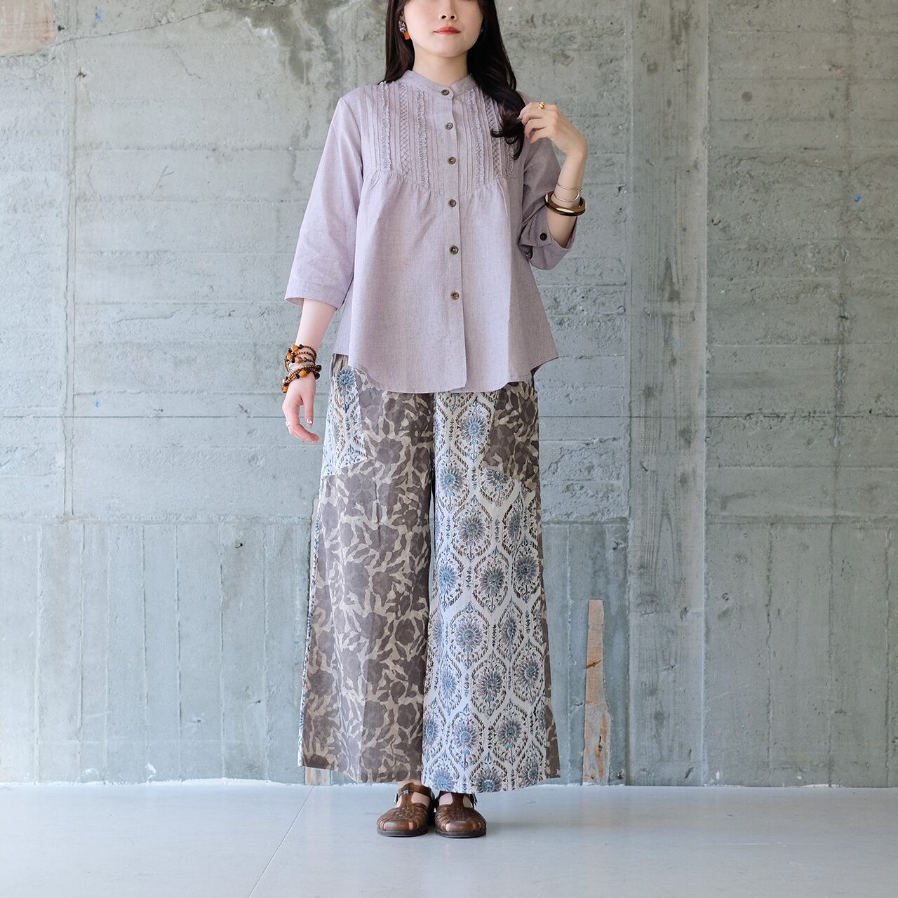 手しごとの渋さでバランスを取った、大人可愛いトップスです。