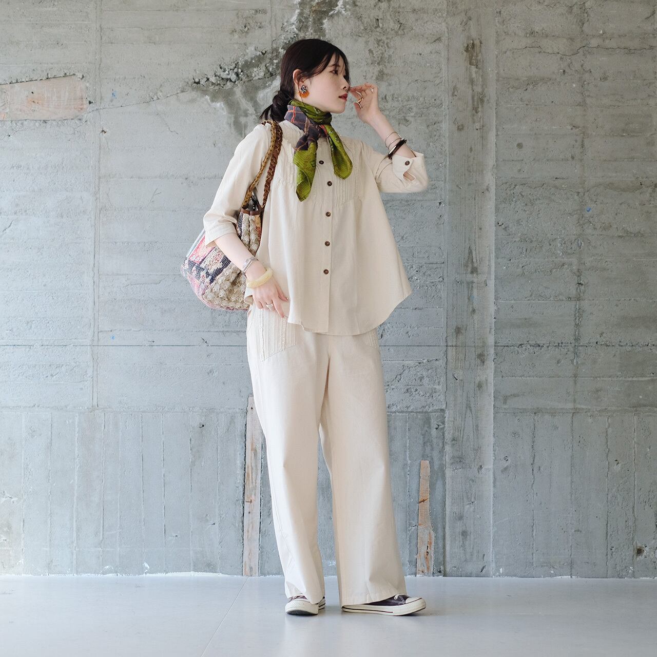 その日の気分やコーディネートに合わせて、自由に使い方を変えられる一枚です。