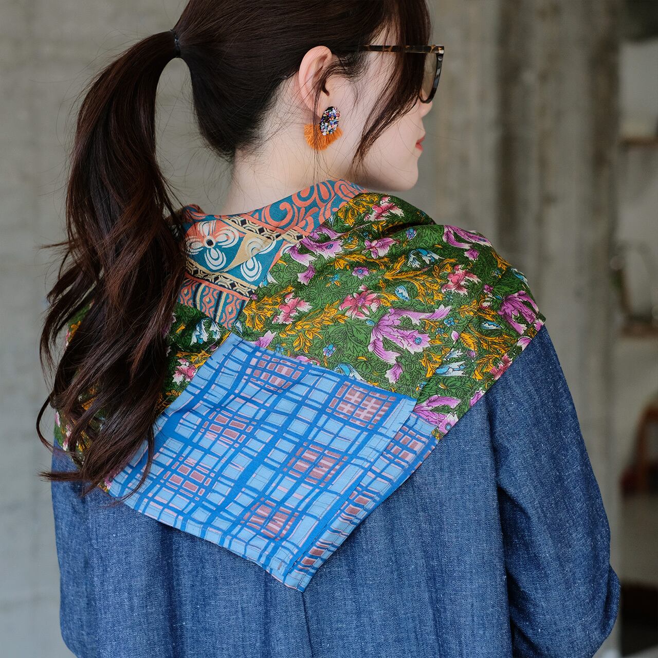 ◆個性的なスカーフ。巻き方で広がる楽しみ方