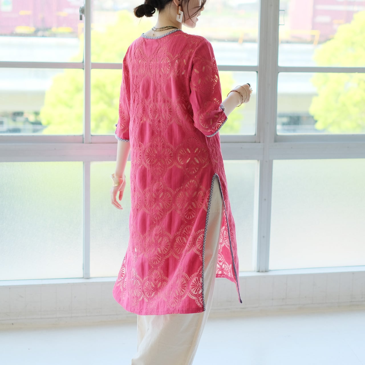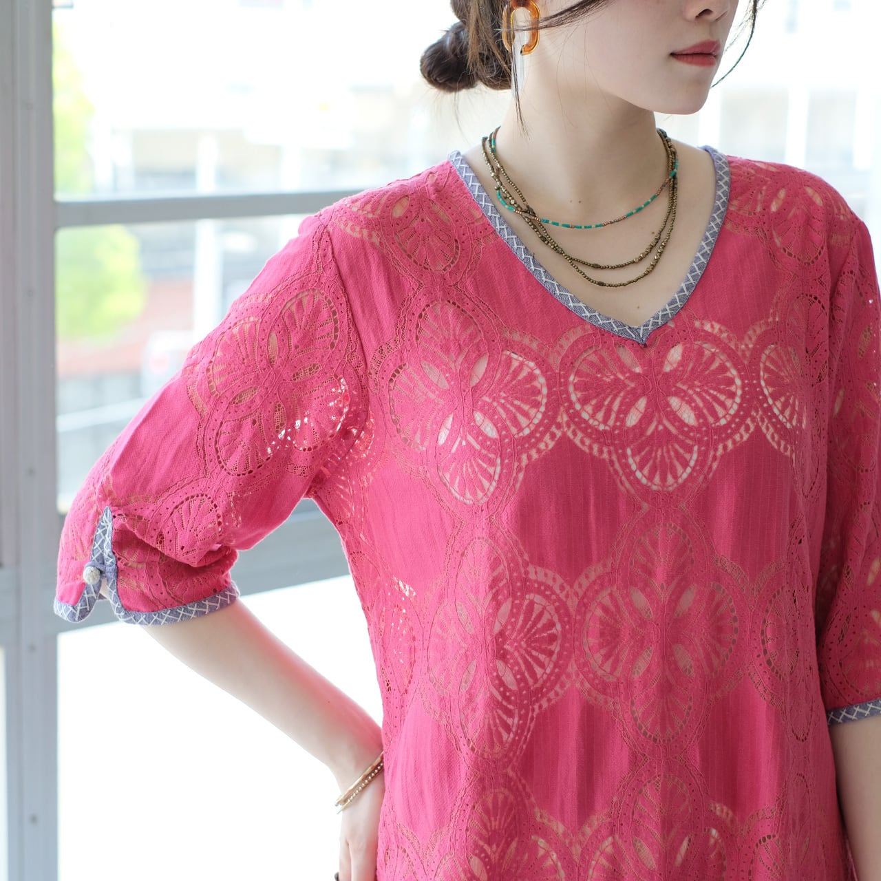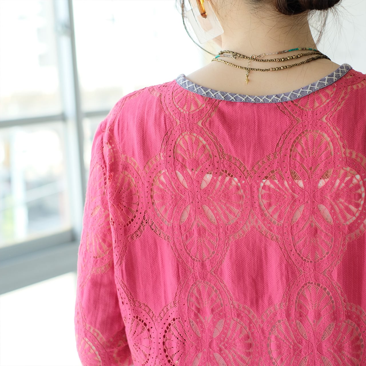総レースのアイテムでも、気軽に重ね着できて日常使いしやすい一着です。