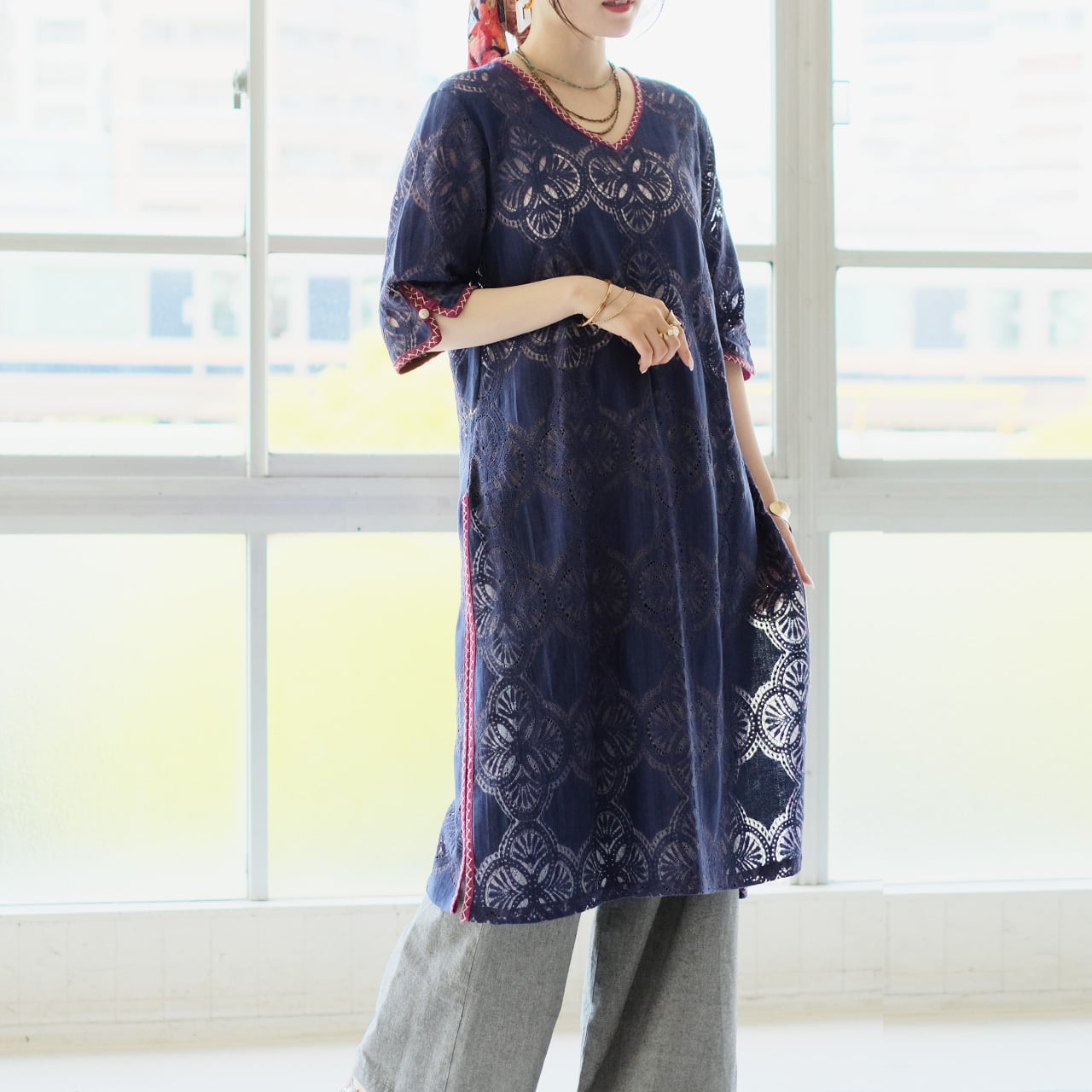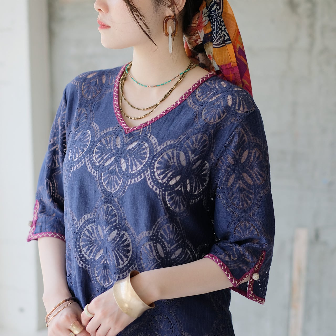 総レースのアイテムでも、気軽に重ね着できて日常使いしやすい一着です。