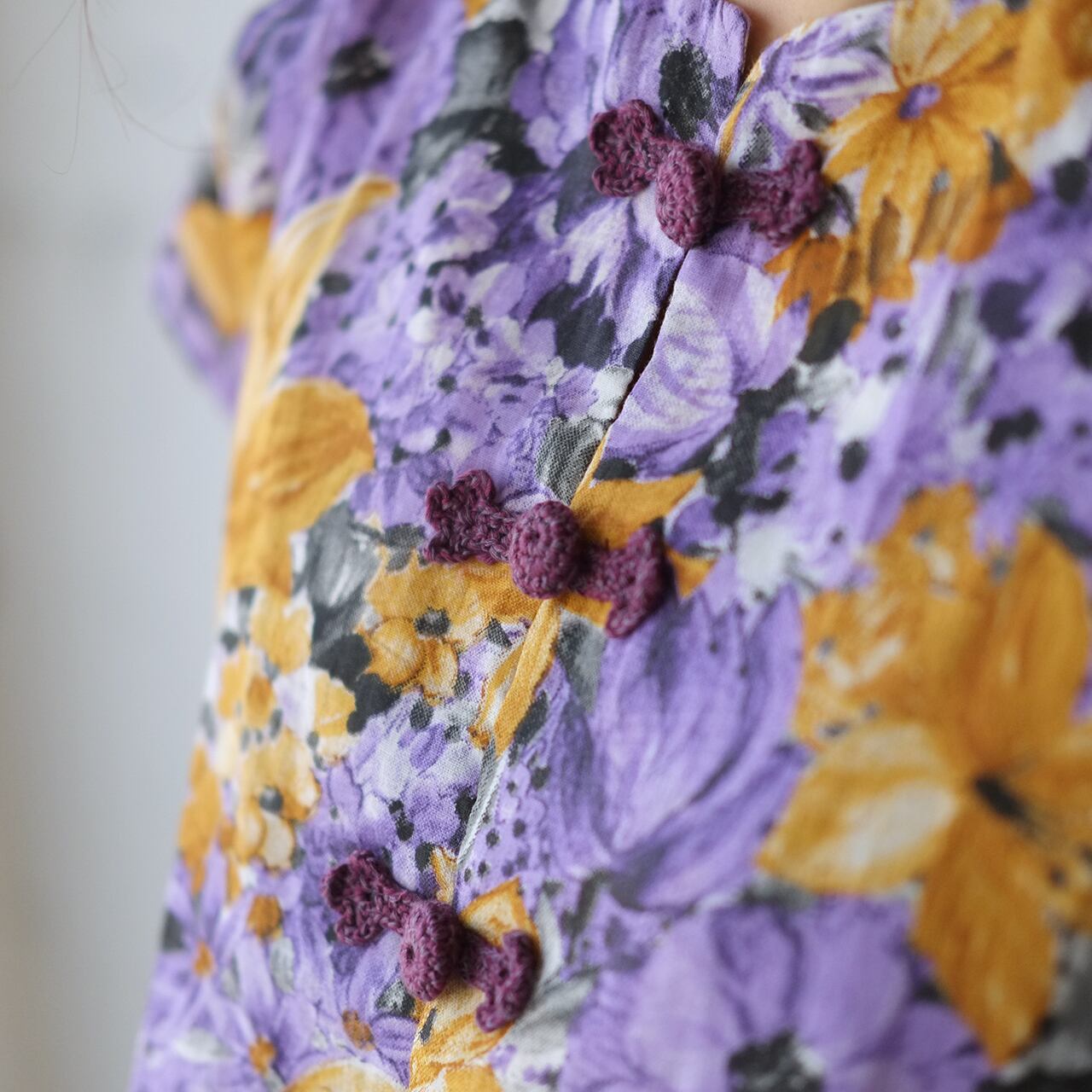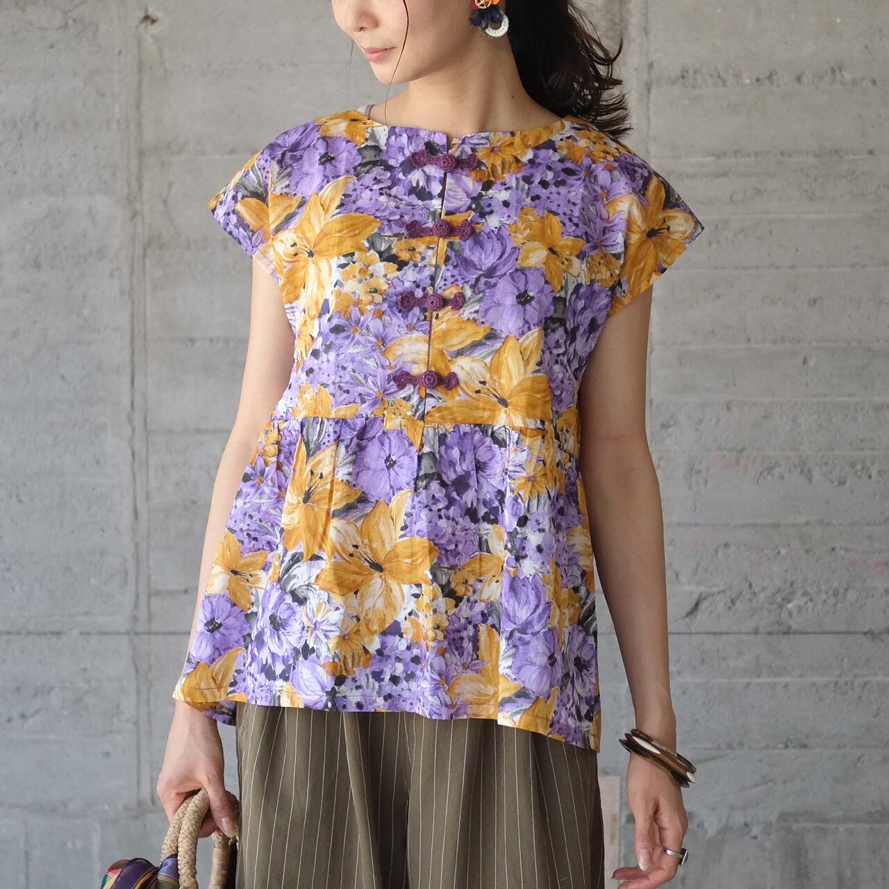 チャイナボタン裾フレアブラウス(22s-13)パープル