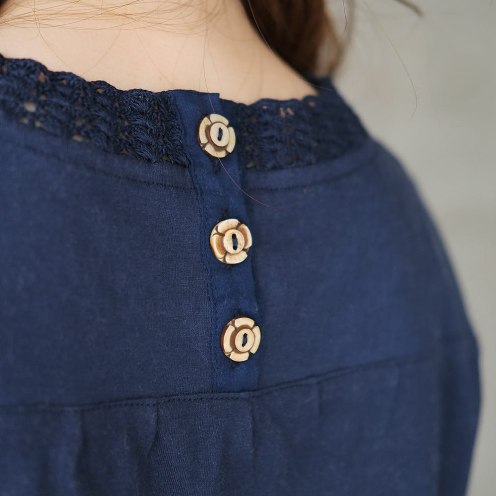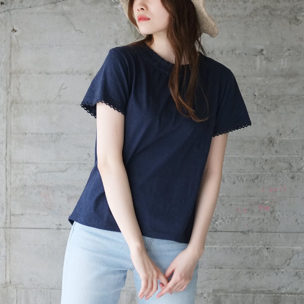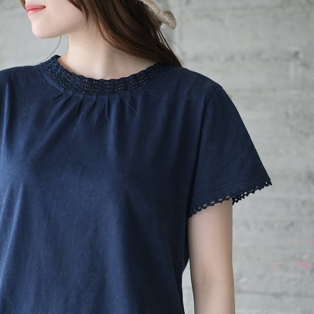 【再販】大人のTシャツ かぎ針編み半袖カットソー(21s-14)ネイビー