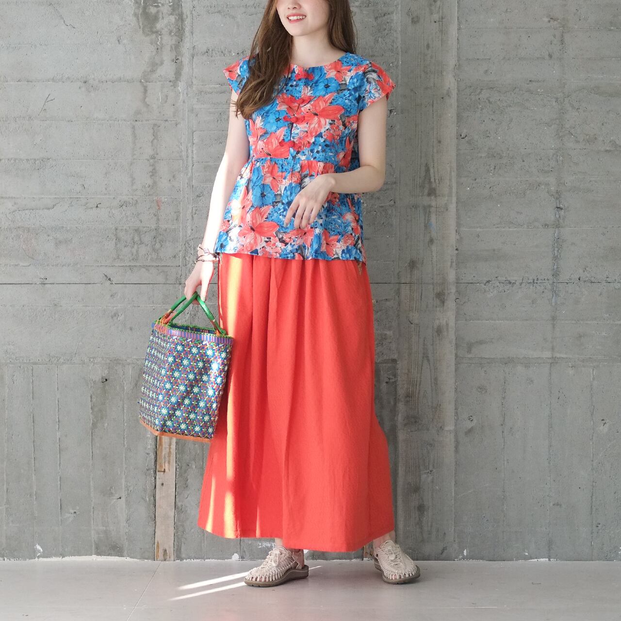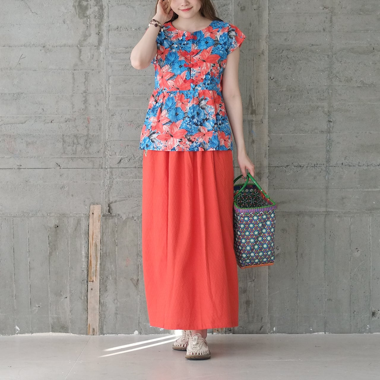 コーデに迷ったらこれ♪広がりすぎない大人シルエット バンブーコットンスカート(22s-20)トマトレッド