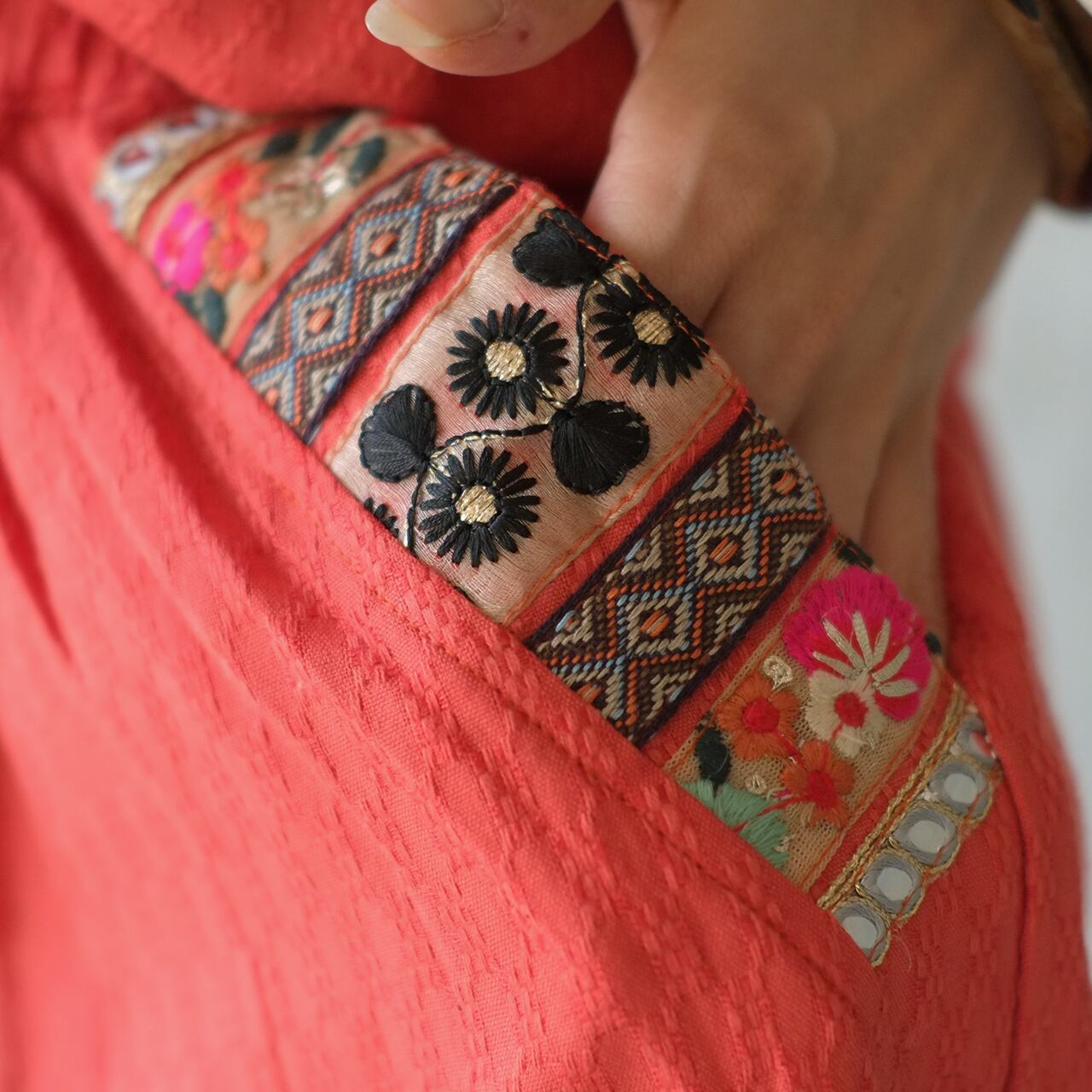 ゴールド糸の刺繍や、ミラー刺繍がインドらしくて華やか♪
