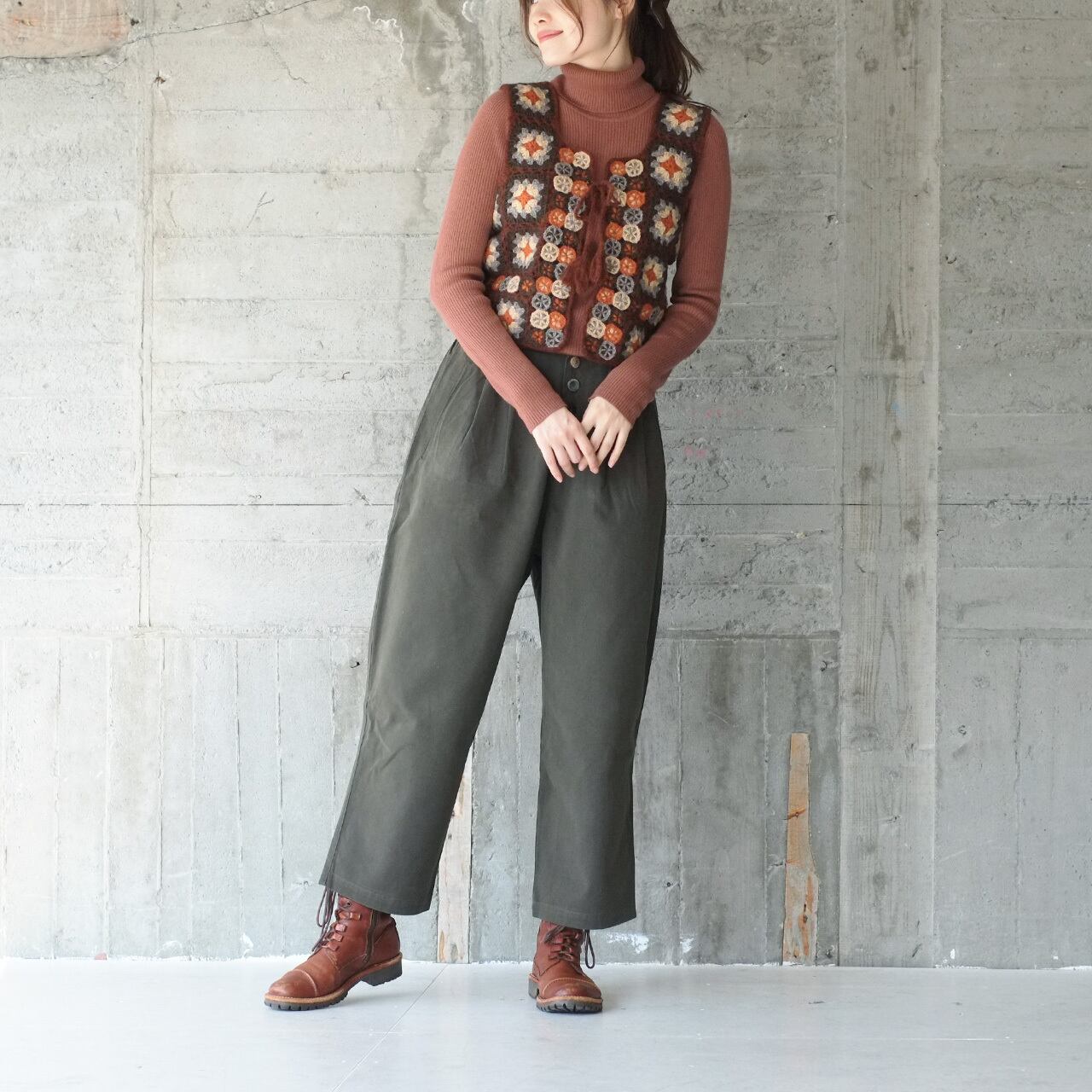 【2025再販】手編みの温もり♡フラワークロシェ3WAYウールベスト(22w-06)ブラウン
