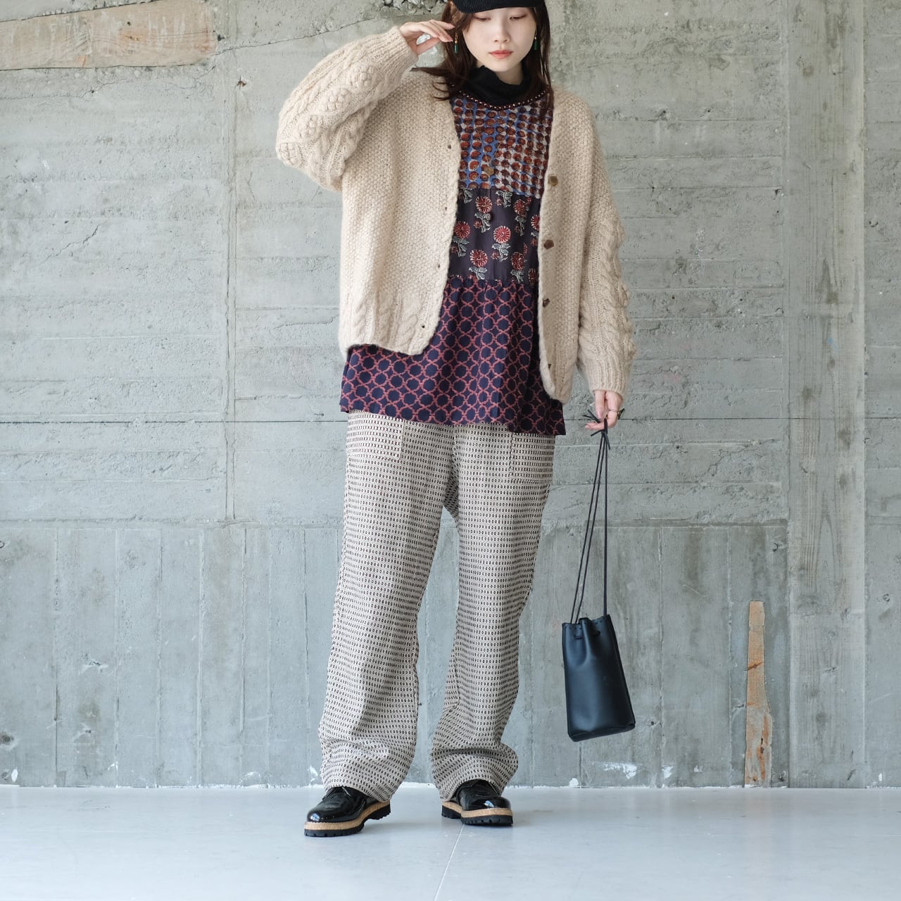 ケーブル編みや、ダイヤモンド編みなどを組み合わせて