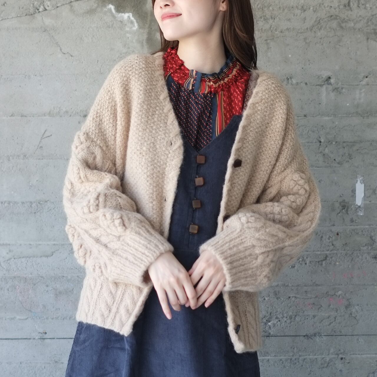 2025年復刻再販!あったかウール♡手編みモヘアニットカーディガン(22w-12)ベージュ