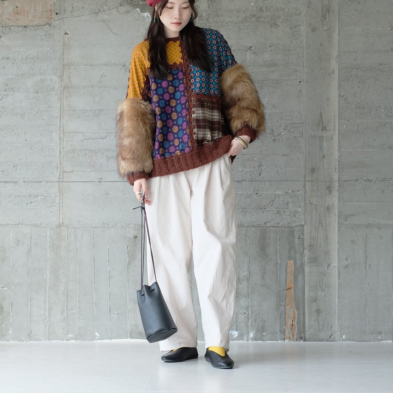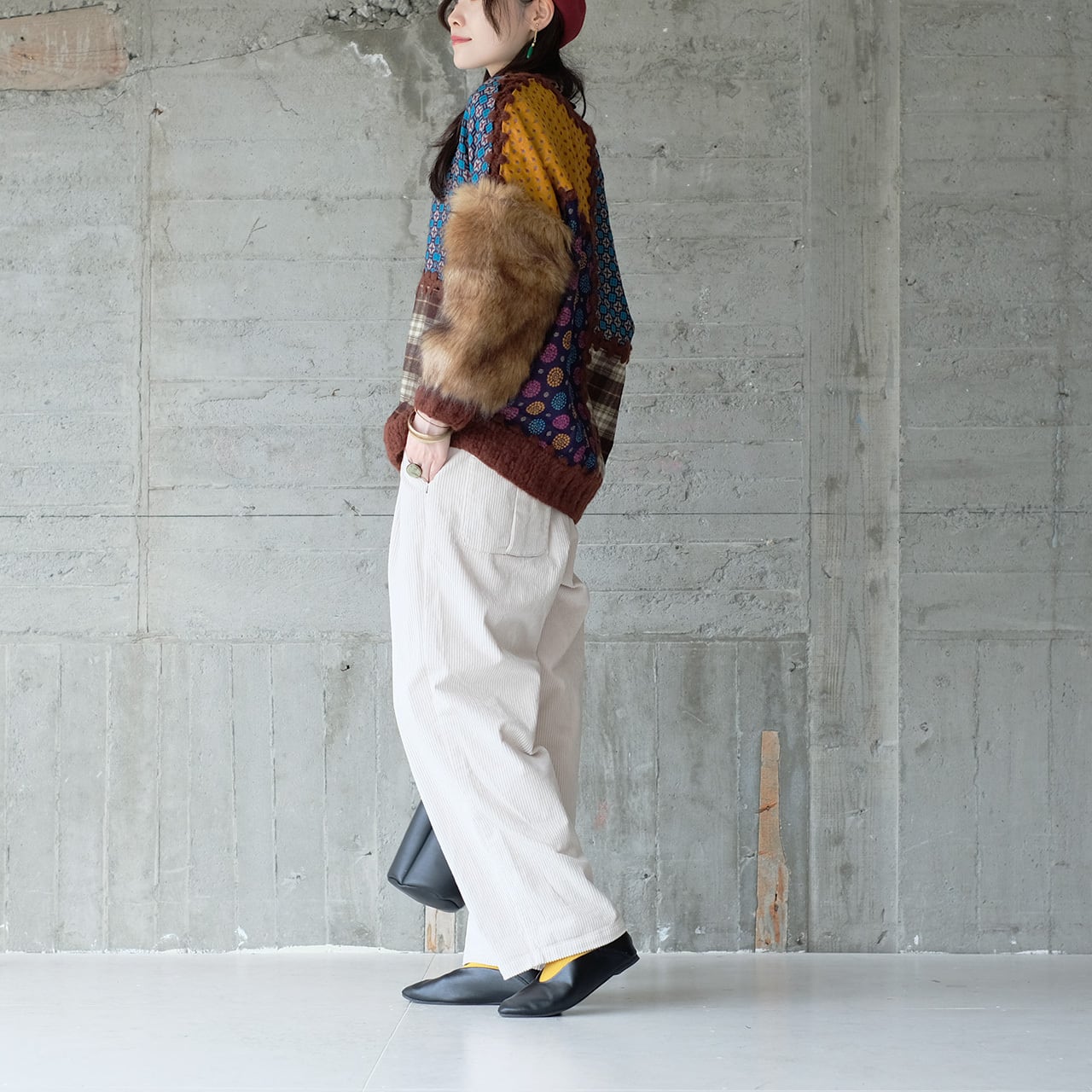 【新色登場】視線クギづけ!エコファースリーブ柄生地パッチワークセーター(22w-17)マスタード