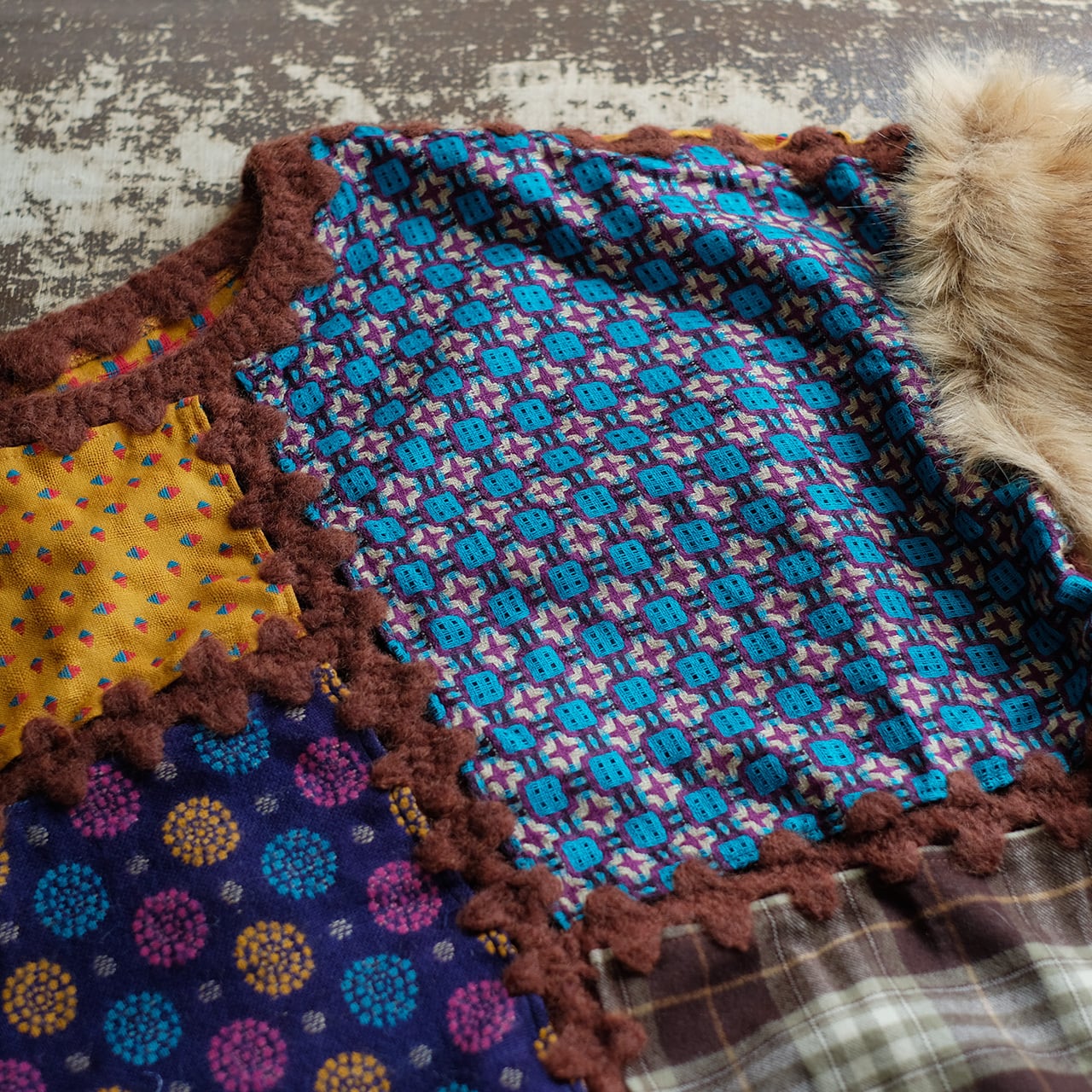 ◆柔らかなモヘアウールで手編みのパッチワーク