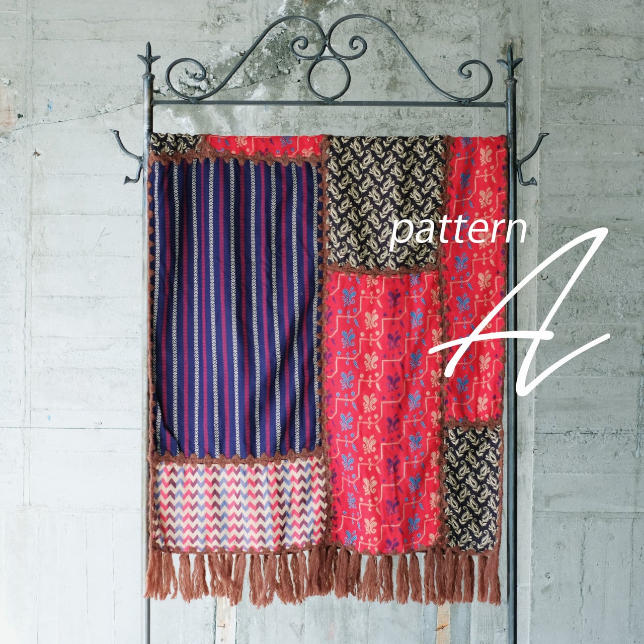【復刻再販】主役級マフラー!柄生地パッチワーク大判ストール(22w-18)パターンA
