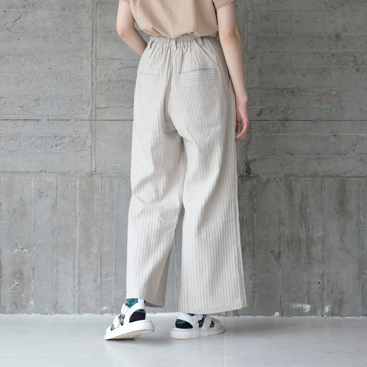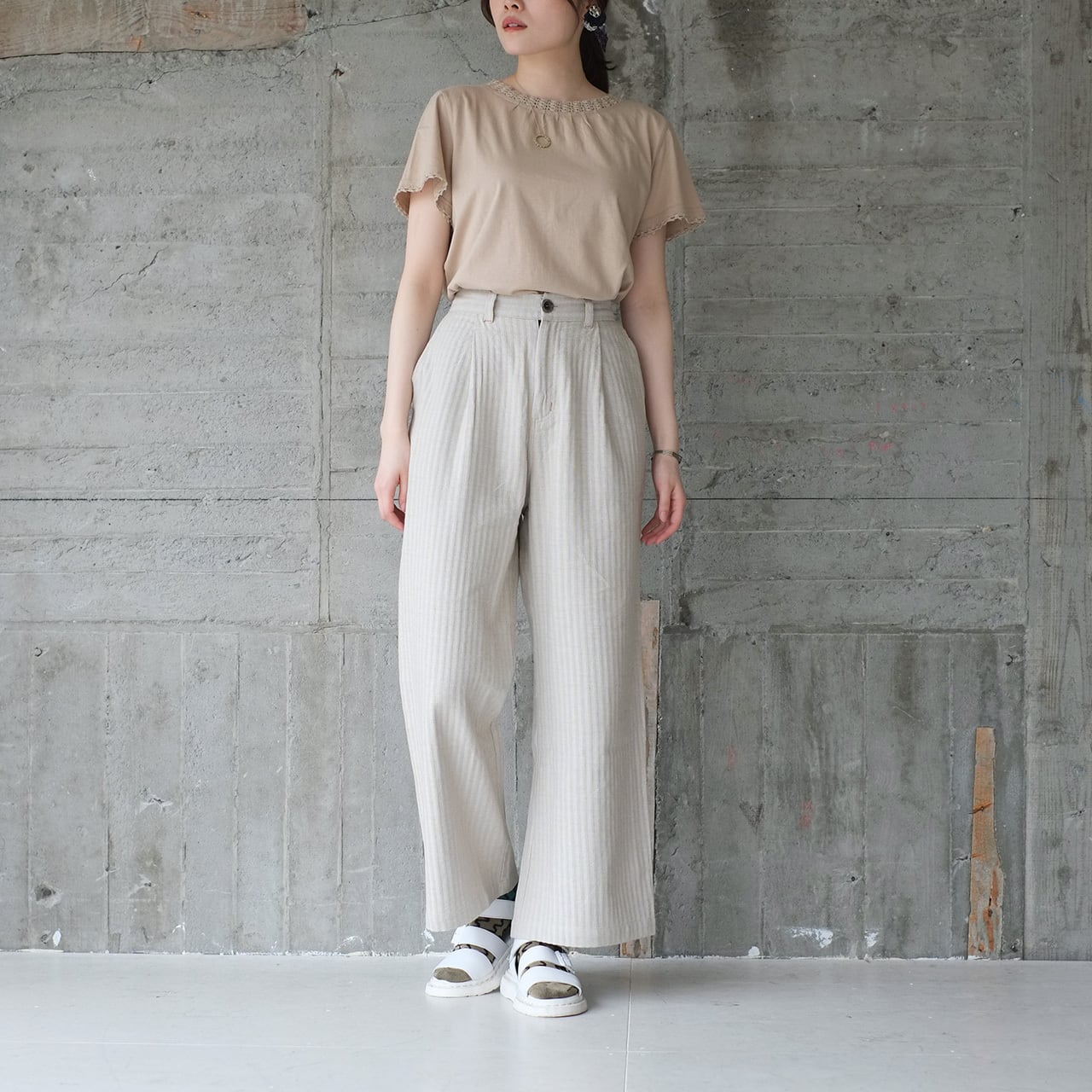 【再販】こなれ美脚ワイド♡コットンリネンストライプ柄パンツ(23s-08)ベージュ