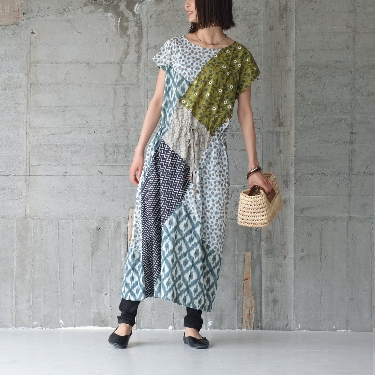 【人気商品復刻】新色登場!斜めパッチワーク半袖ワンピース(21s-23)オリーブ
