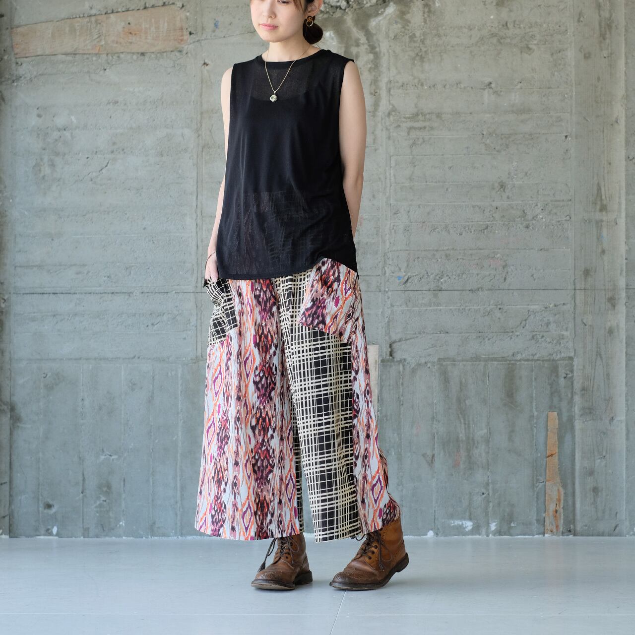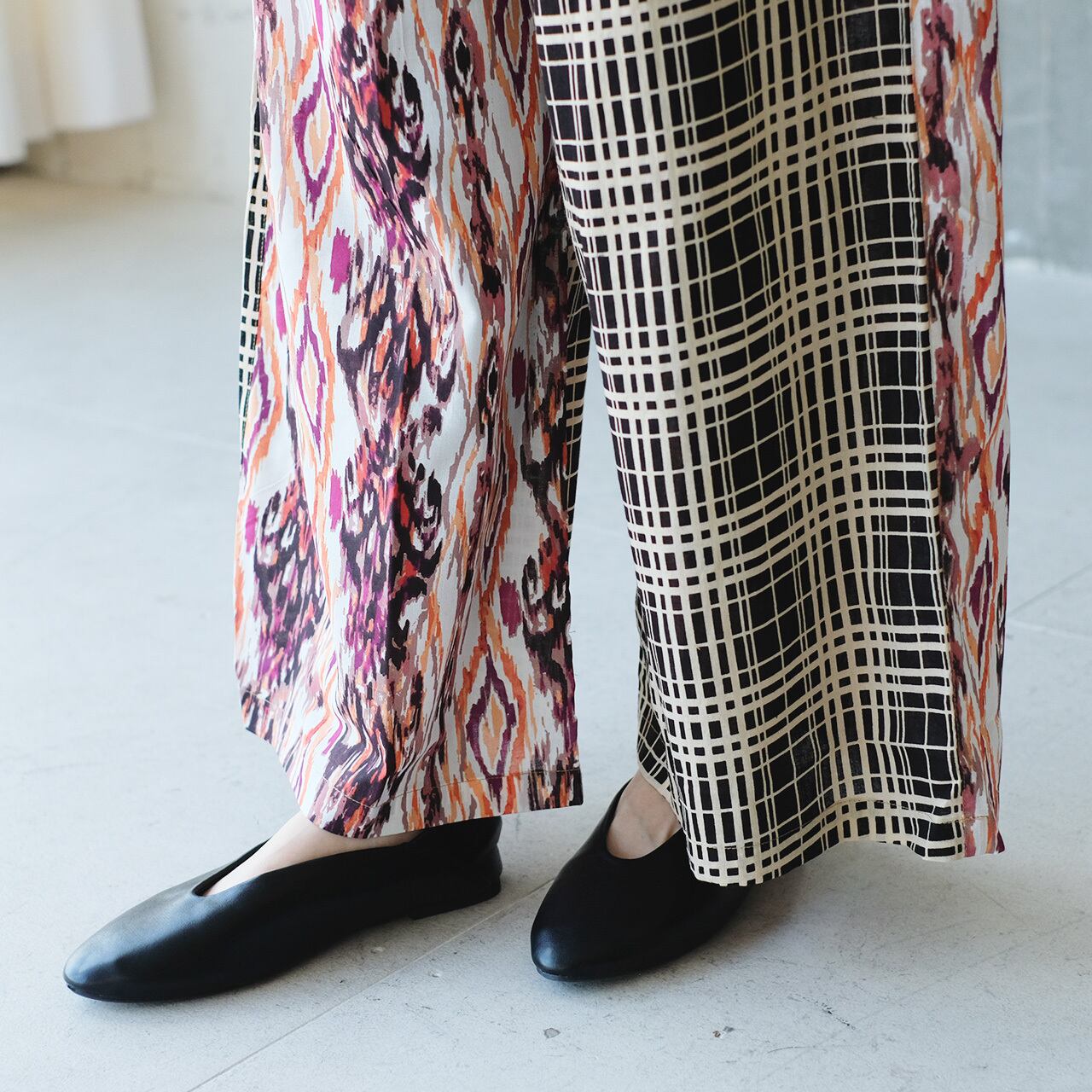 右脚と左脚、前後で、色柄の違う2種類の生地を使った