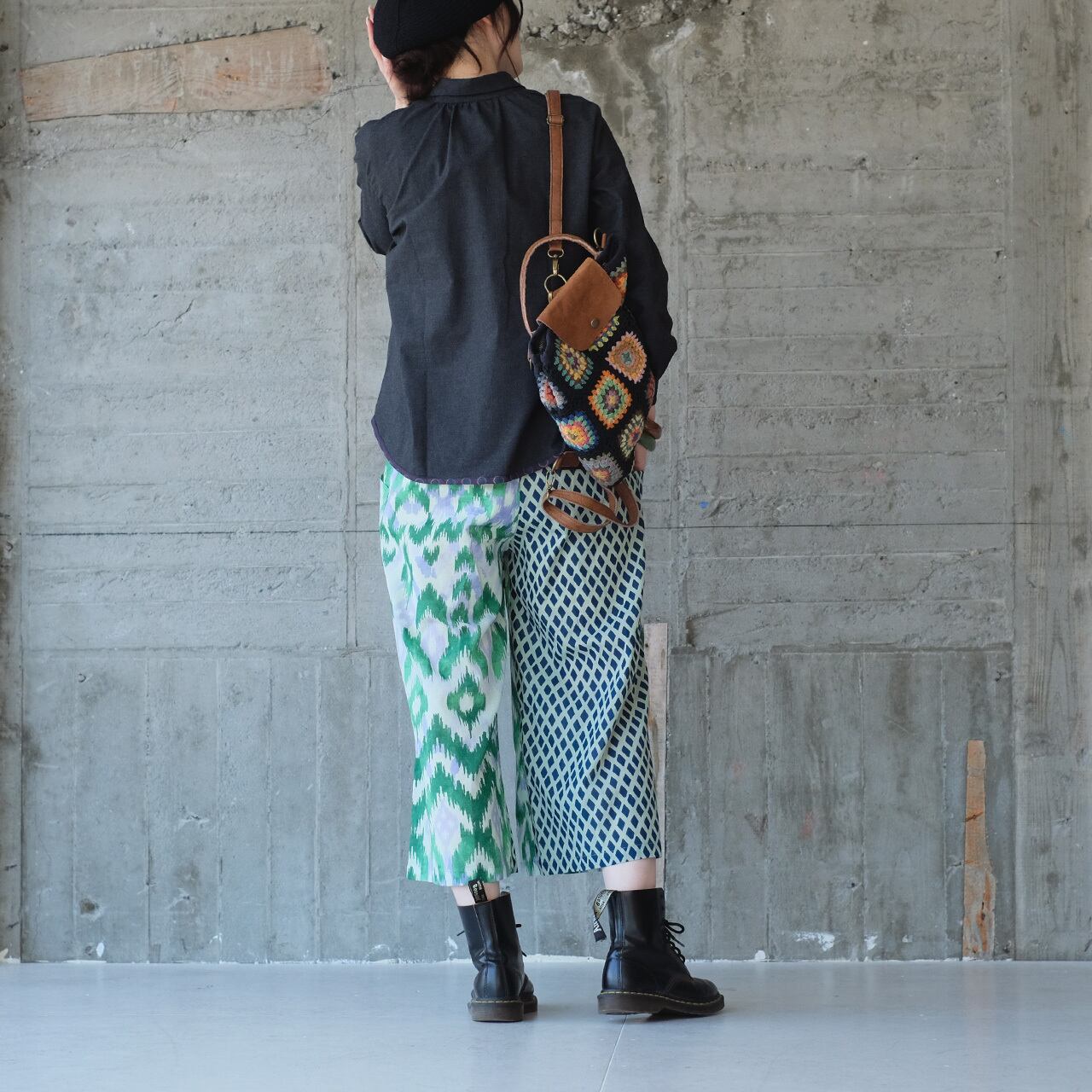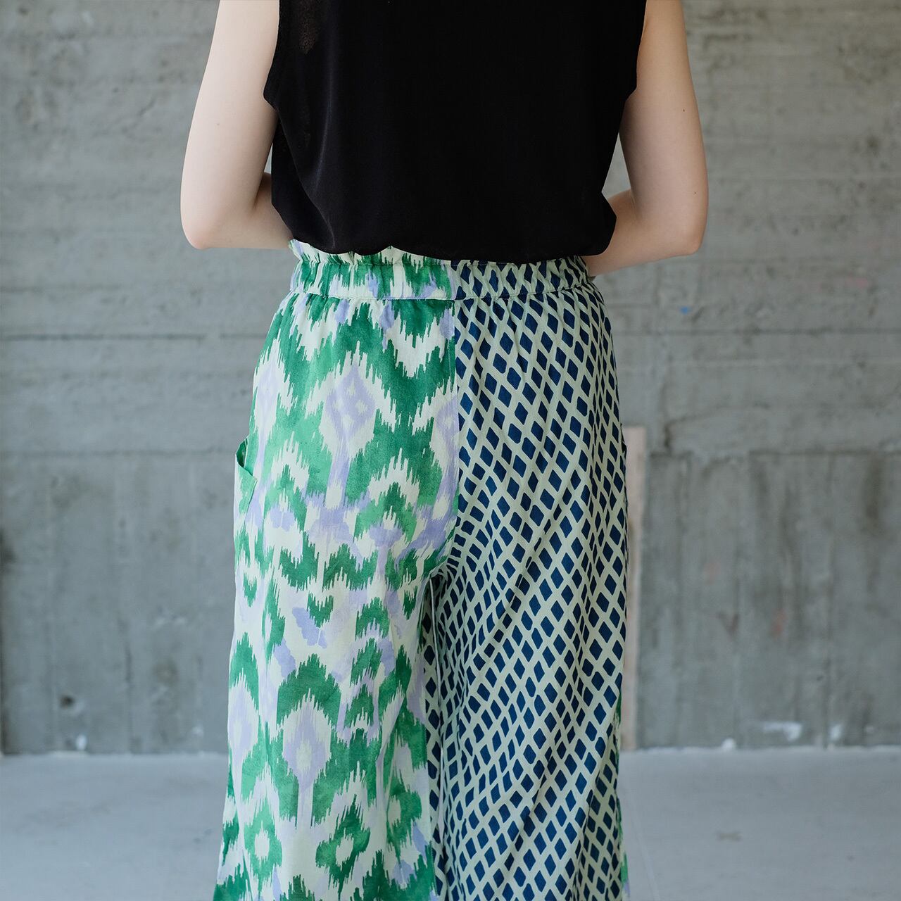 【復刻再販】夏に涼しい人気商品!左右で柄が違うクレイジーパターンパンツ(22s-22)レギュラー丈 グリーン