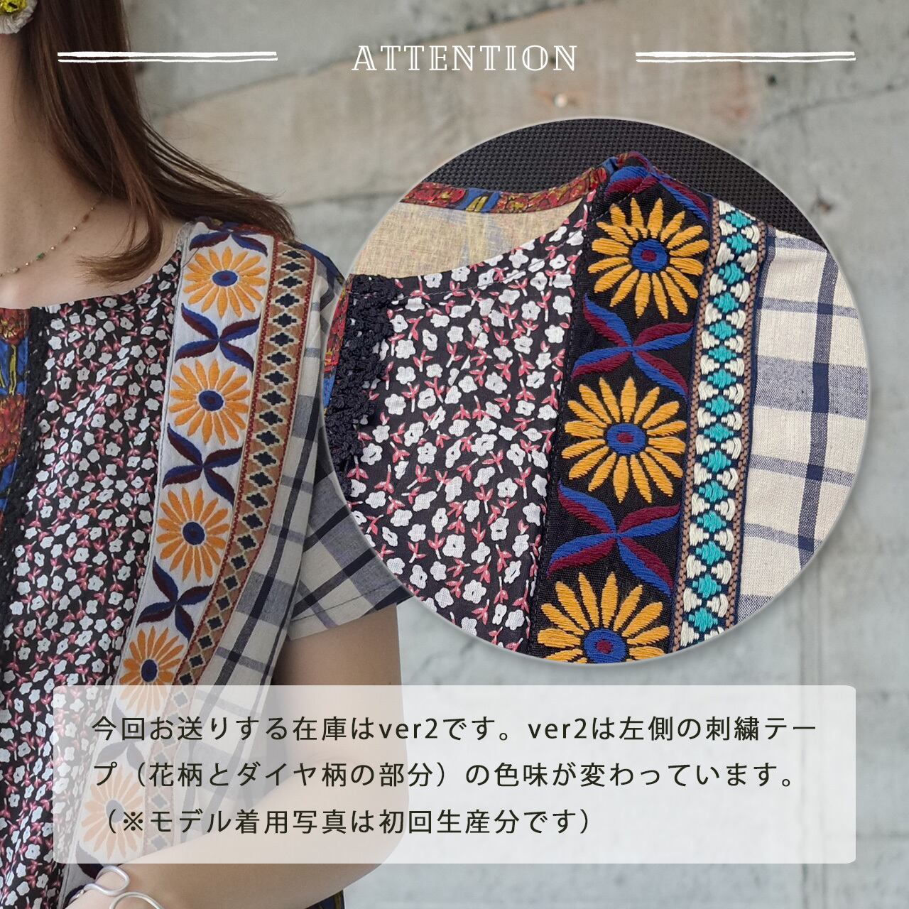 世界を旅するマテリアル♪パッチワーク半袖プルブラウス(23s-13)ブルーver2