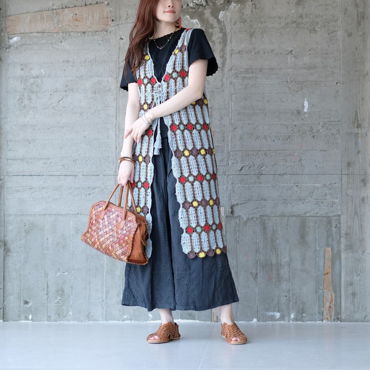 前後2way!ステンドグラスニットロングベスト (24s-03)ライトブルー