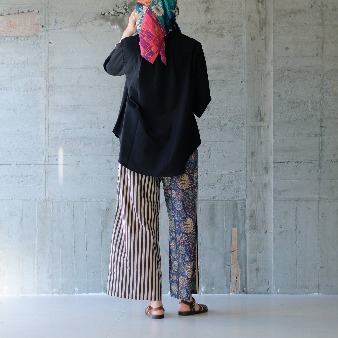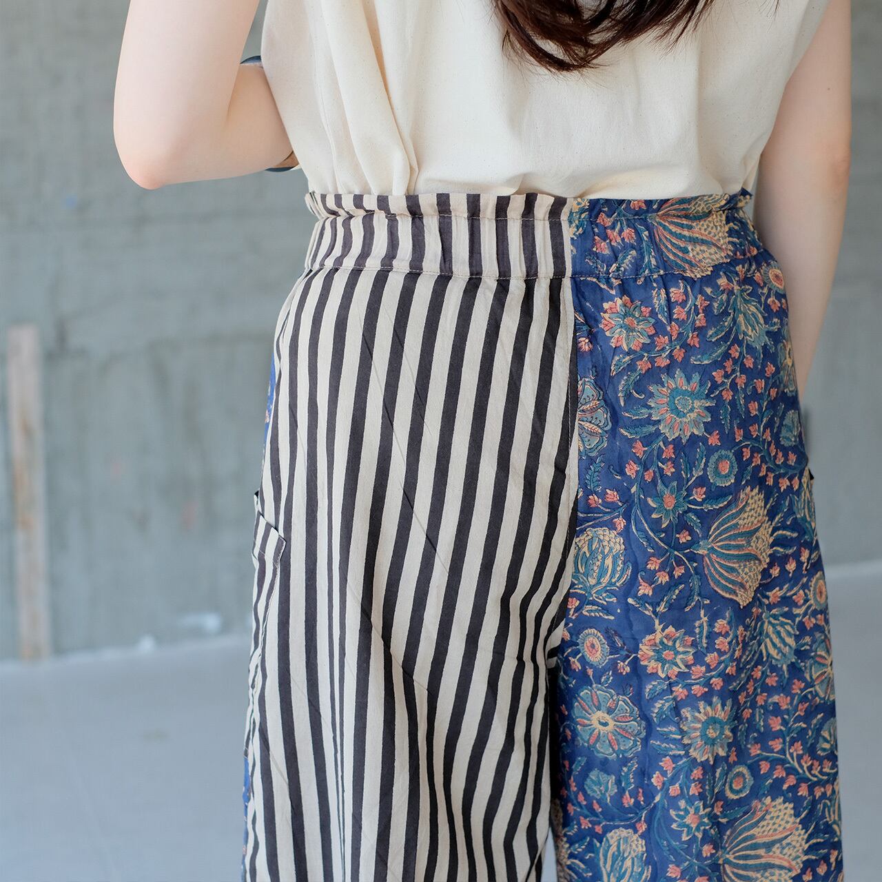 前後・左右で色と柄が違う、おしゃれなアシンメトリー。