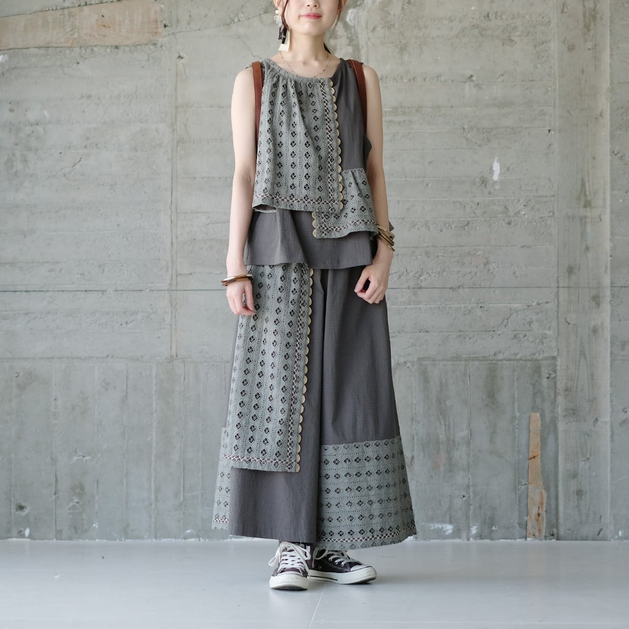 コットン生地の素朴さと相まってアンティークのオートクチュールのよう。