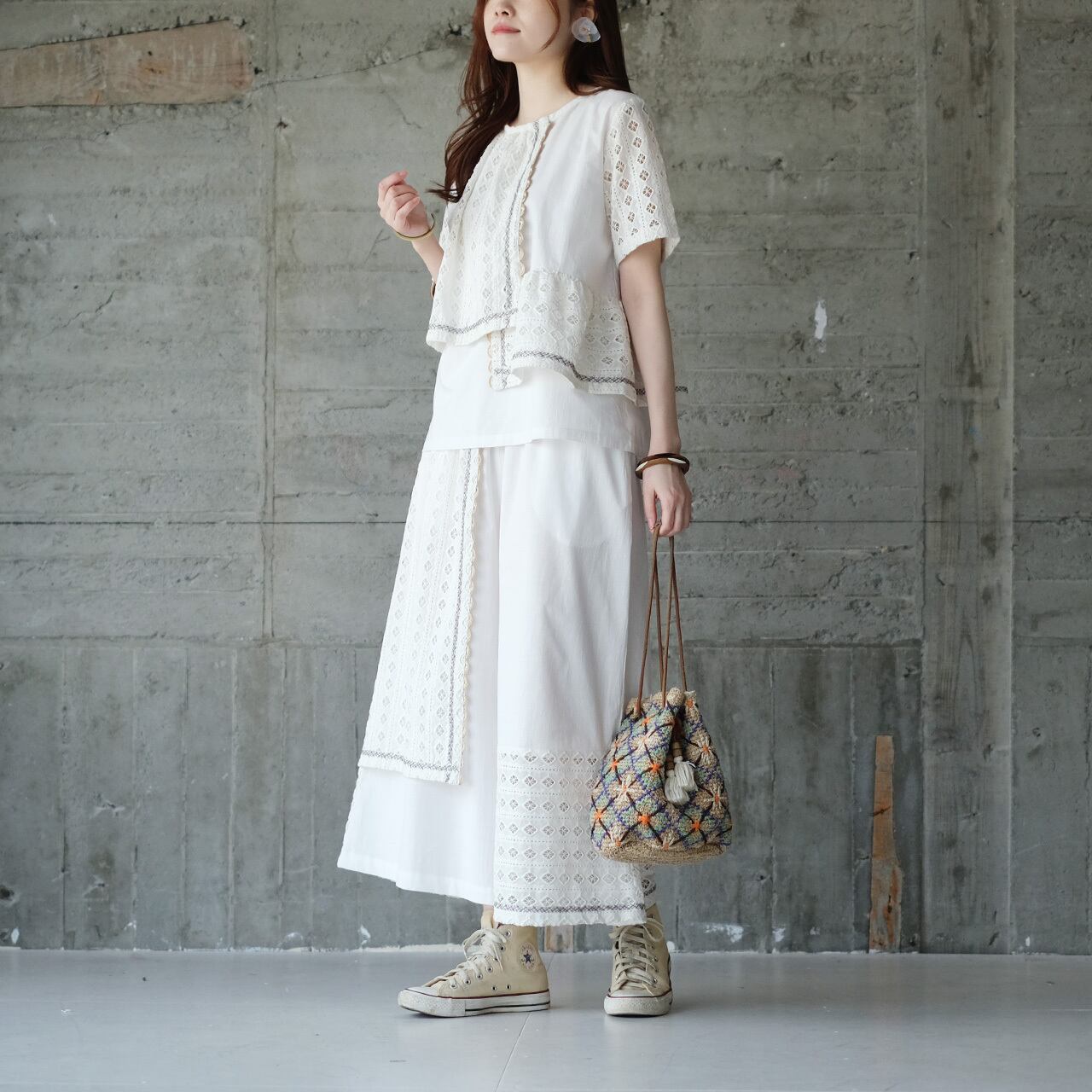 ⭐︎再販⭐︎【人気シリーズ】個性的×フェミニン♡カットワークレース重なるフレアパンツ(24s-14)ホワイトver2
